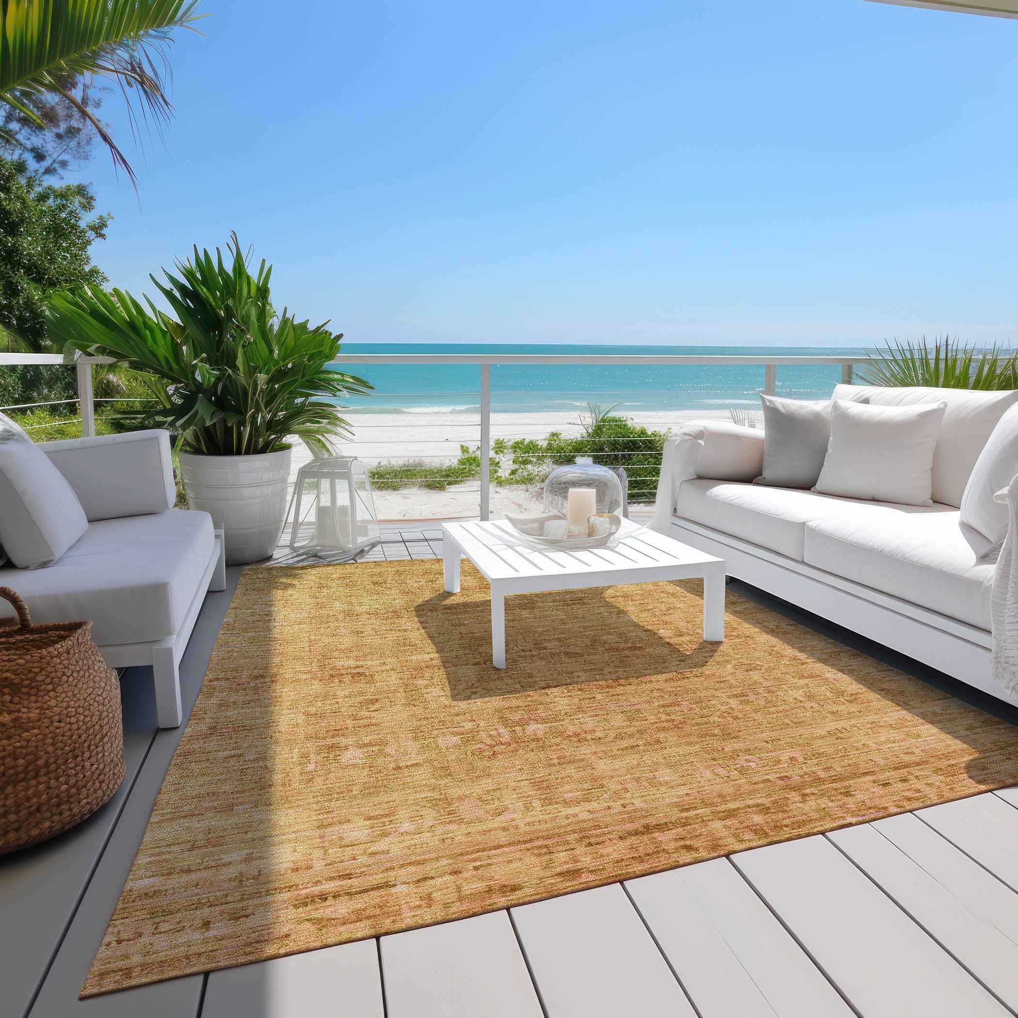 9' X 12' Salmon And Gold Abstract Washable Indoor Outdoor Area Rug