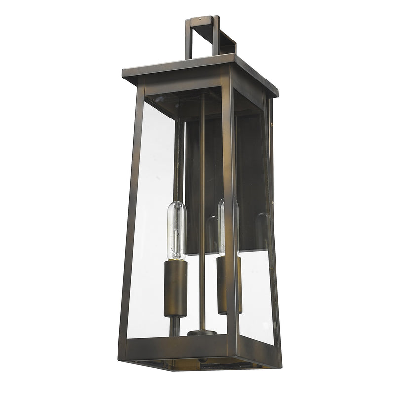 The Alden collection of outdoor wall lanterns combine sharp lines and angles. Elongated, tapered bodies and clear glass come together handsomely in this modern design. Alden is available in matte black and oil-rubbed bronze and comes in three sizes.