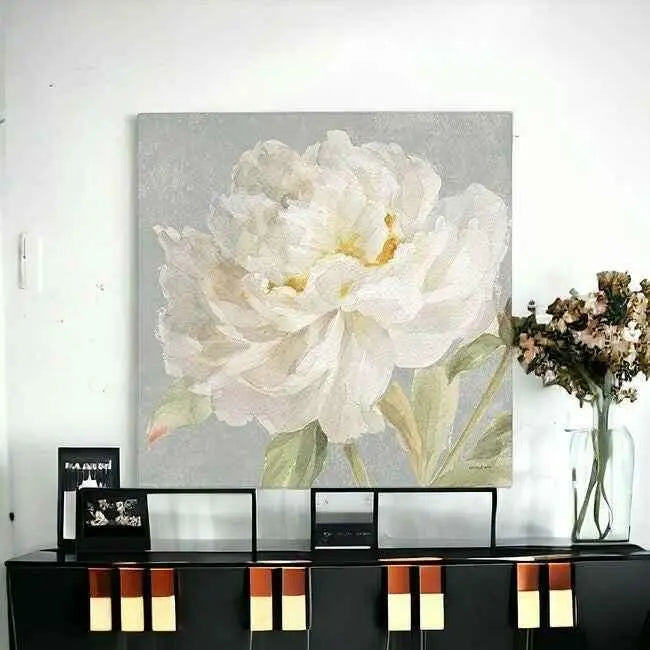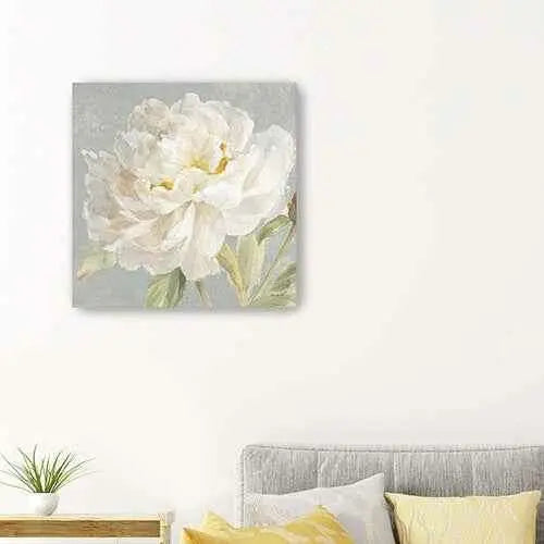 Unique and decorative, this angelic white peony flower unframed print wall art will leave a lasting impression. This print is a visual artistic expression that allows you to decorate your space in style. Reproduced for you on canvas, this hanging decorative accent will be a trendy and fashionable way to dress your walls. Adding this hanging wall art to your space to make your room feel more finished and attractive. Instantly liven up your space with this art that brings color and dimension to your walls. 40 inches H x 40 inches W x 1.25 inches D