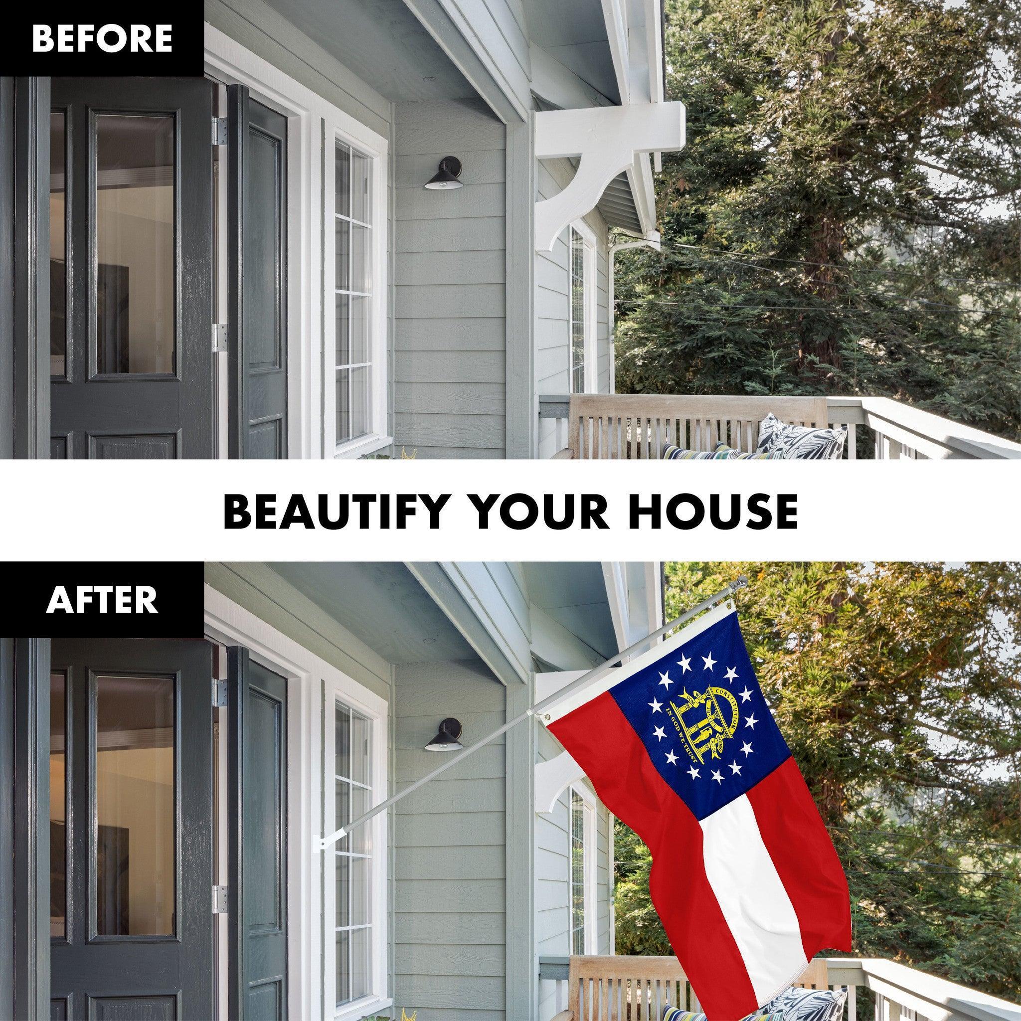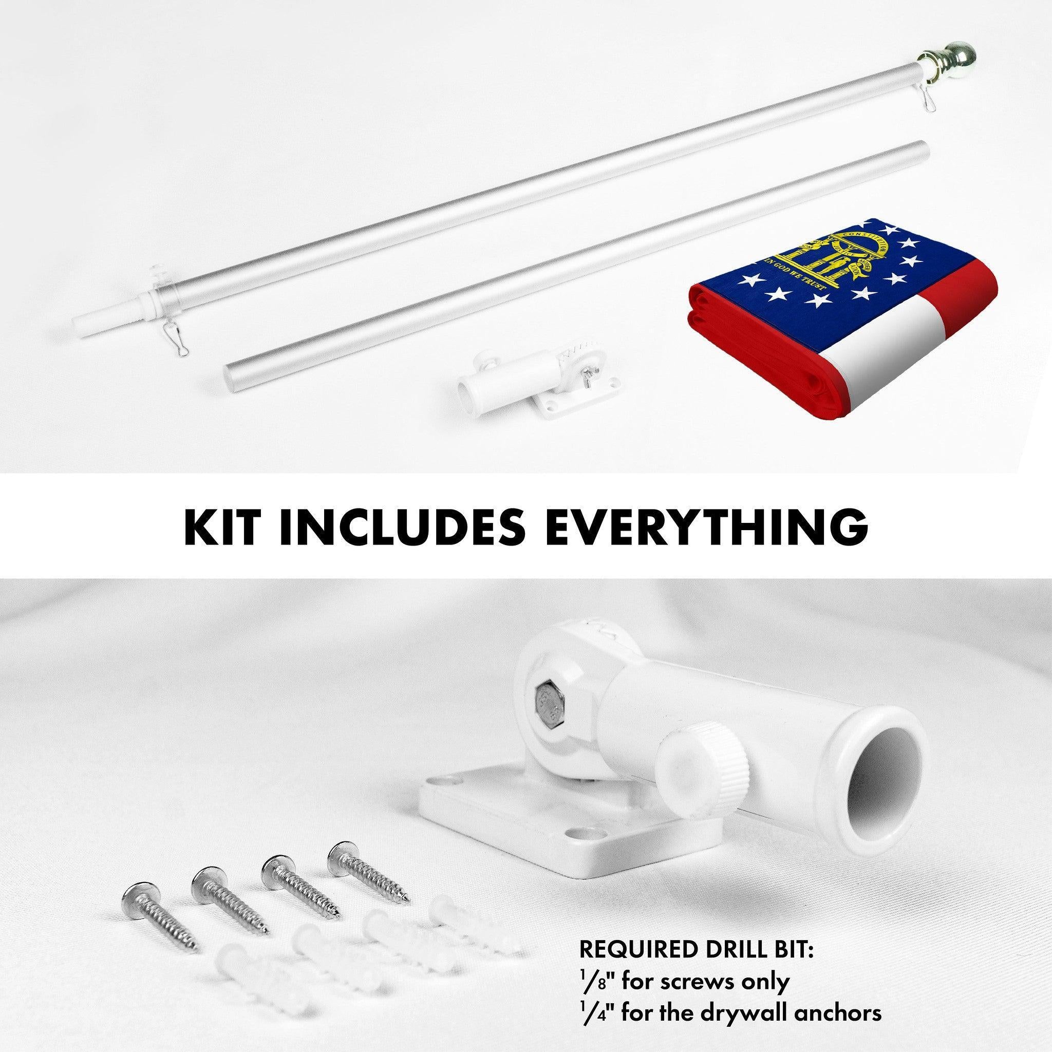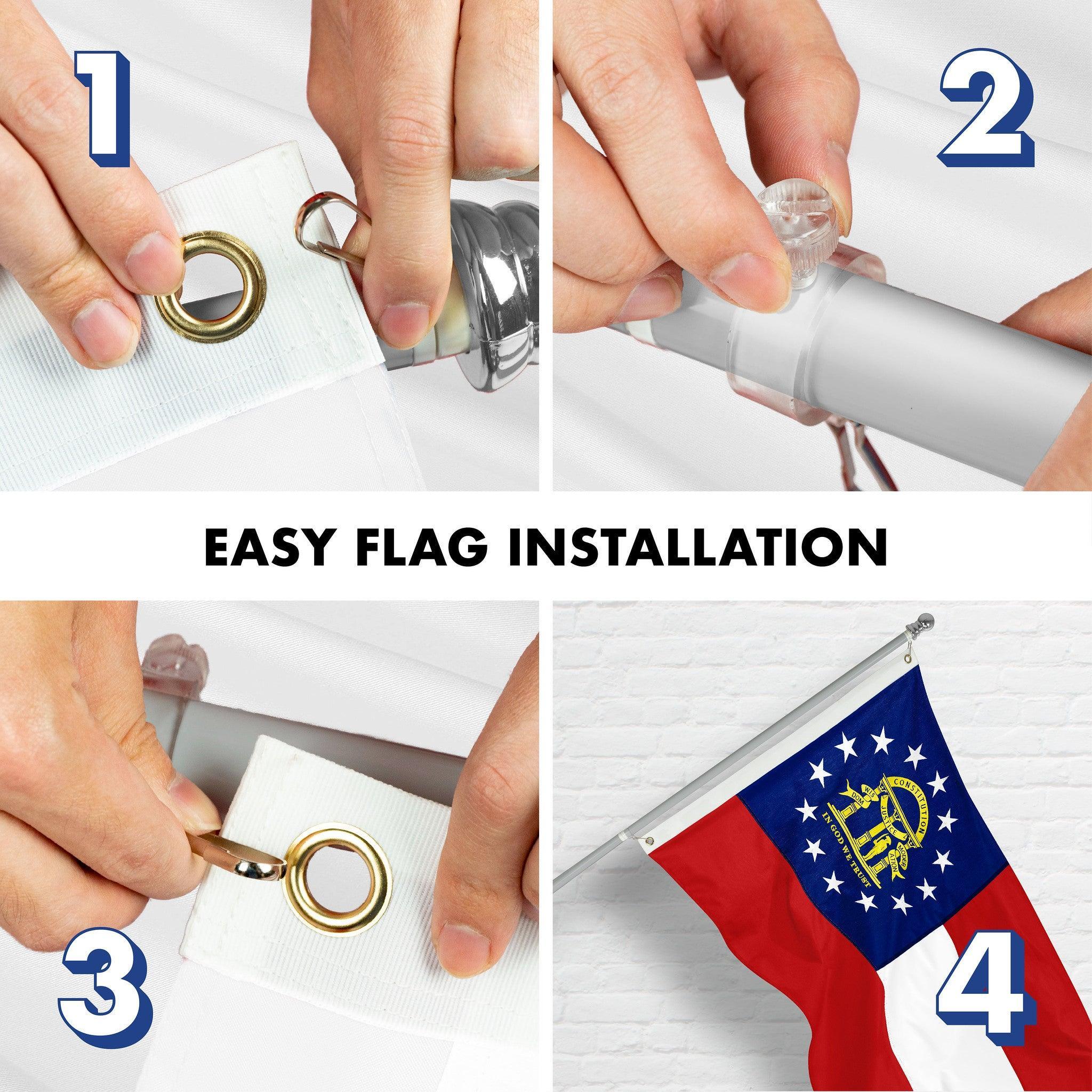 G128 Combo Pack: 5 Ft Tangle Free Spinning Flagpole (Silver) & Georgia Flag 2x3 Ft Embroidered 220GSM Spun Polyester, Brass Grommets (Flag Included) Aluminum Flag Pole