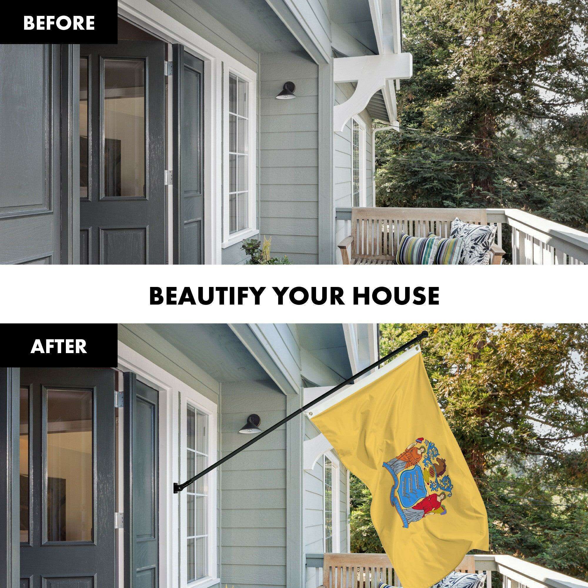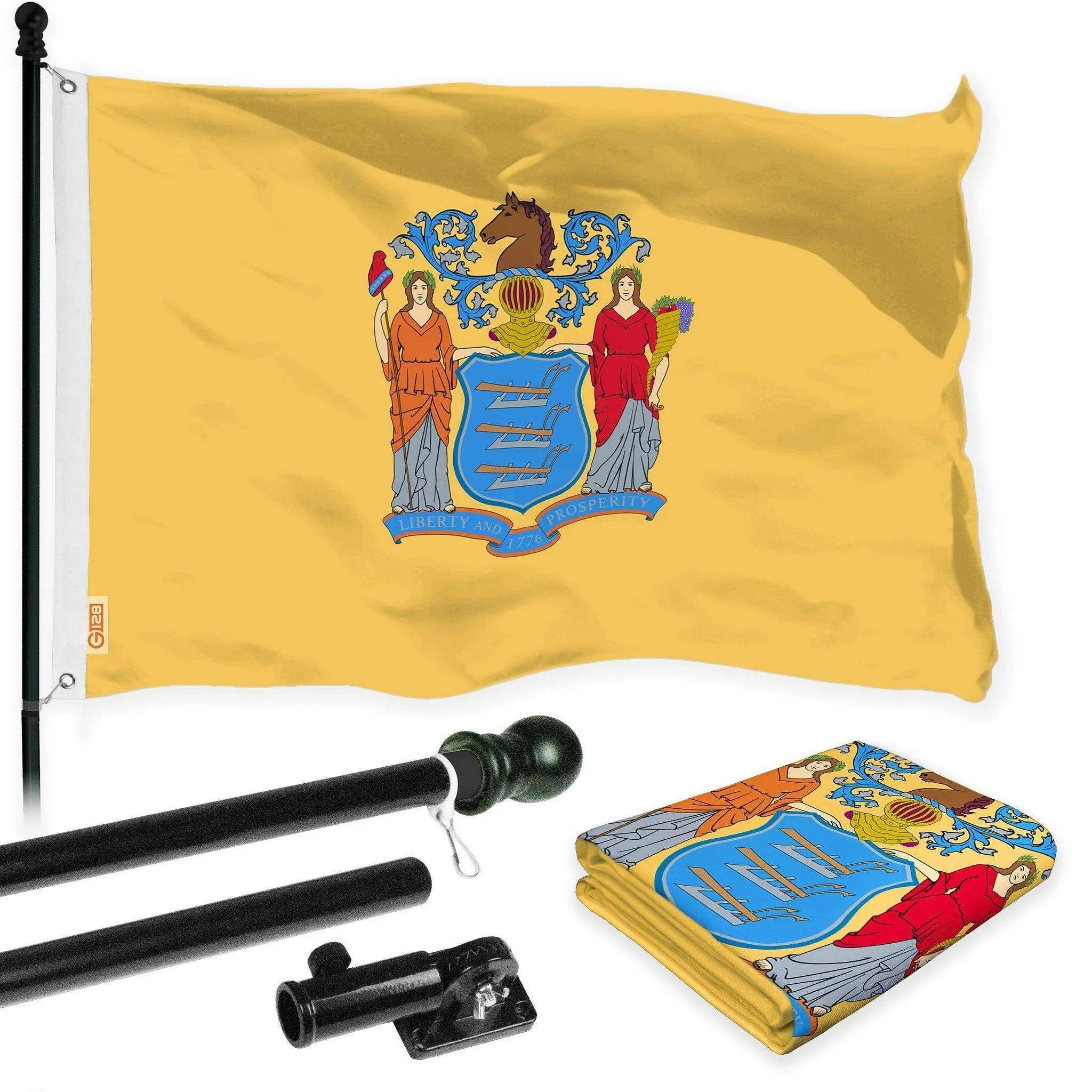 G128 Combo Pack: 6 Ft Tangle Free Aluminum Spinning Flagpole (Black) & New Jersey NJ State Flag 3x5 Ft, LiteWeave Pro Series Printed 300D Polyester | Pole with Flag Included