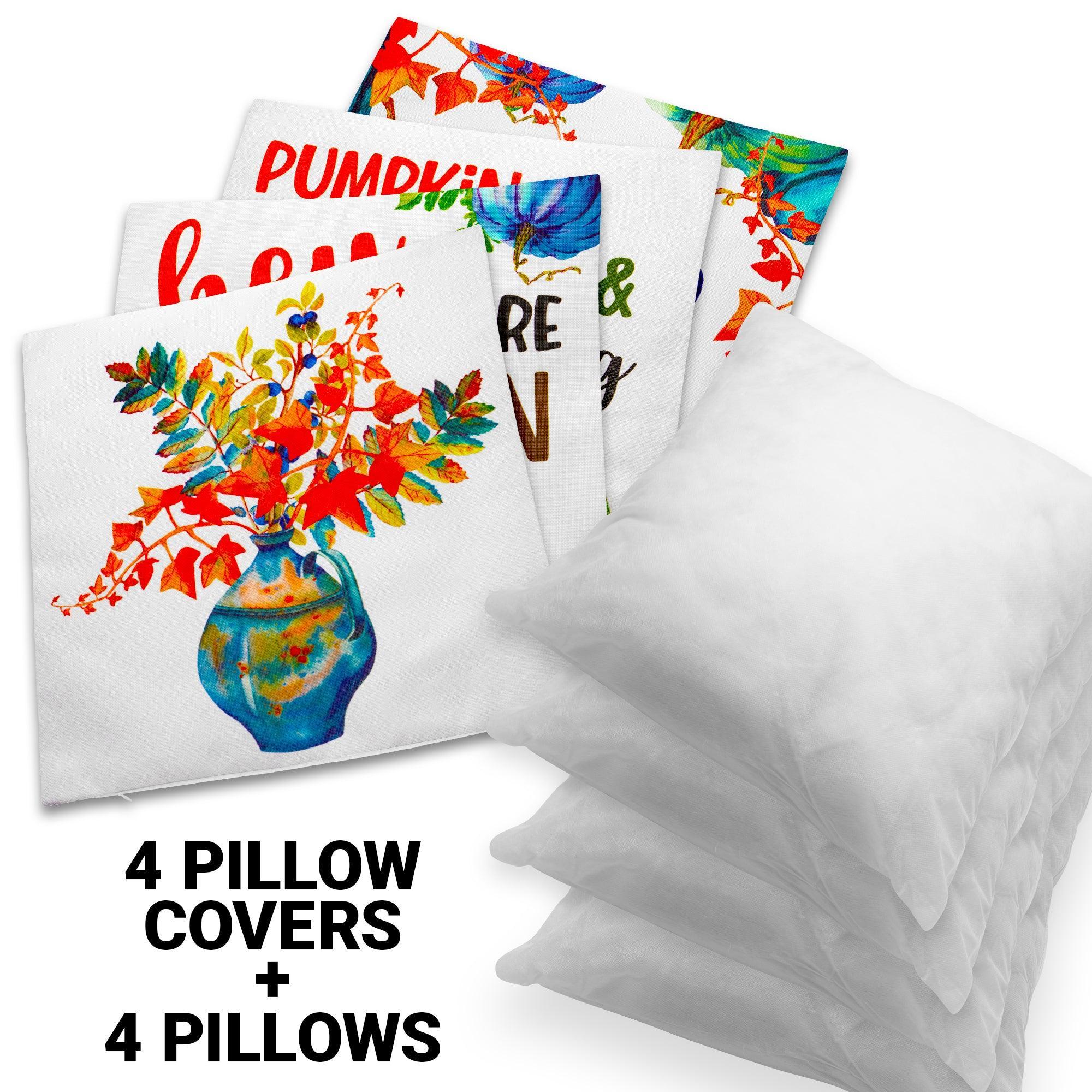 - SIZE: The Set INCLUDE the pillow inserts and pillow covers, and the pillowcase is 18×18 inches. Due to manual cutting and sewing, please allow a deviation of 0.5-1 in. The invisible zipper design is easy to refill.