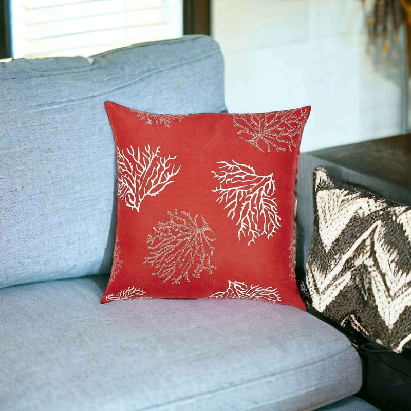 Red and Silver Coral Reef Decorative Throw Pillow