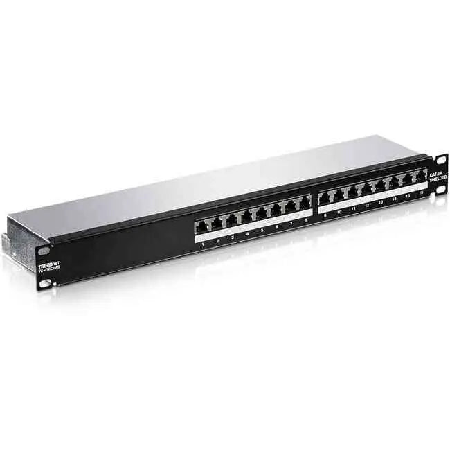 TRENDnet's 16-Port Cat6A Shielded 1U Patch Panel, model TC-P16C6AS, is ideal for gigabit and 10G Copper Ethernet network applications. This patch panel is perfect for use with Cat6A shielded cabling, which is specifically designed to eliminate EMI and crosstalk, ensuring peak performance and data integrity.