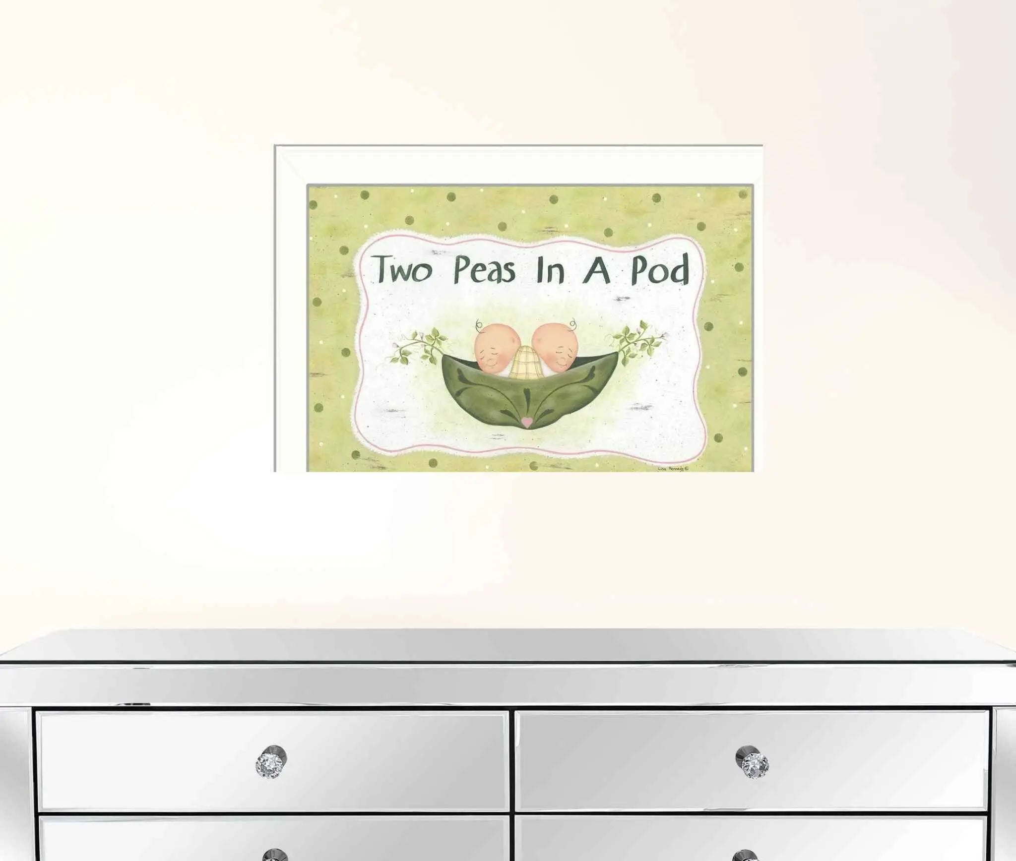 Unique and decorative, this two peas in a pod white framed print wall art will leave a lasting impression. This print is a visual artistic expression that allows you to decorate your space in style. Reproduced for you on paper, this hanging decorative accent will be a trendy and fashionable way to dress your walls. Adding this hanging wall art to your space to make your room feel more finished and attractive. Utilize this opportunity to create a focal point in the room with this fabulous wall decor option. 18 inches H x 14 inches W x 1 inches D