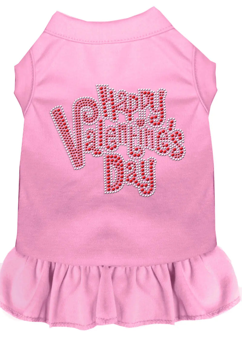 Happy Valentines Day Rhinestone Dress Light Pink Lg