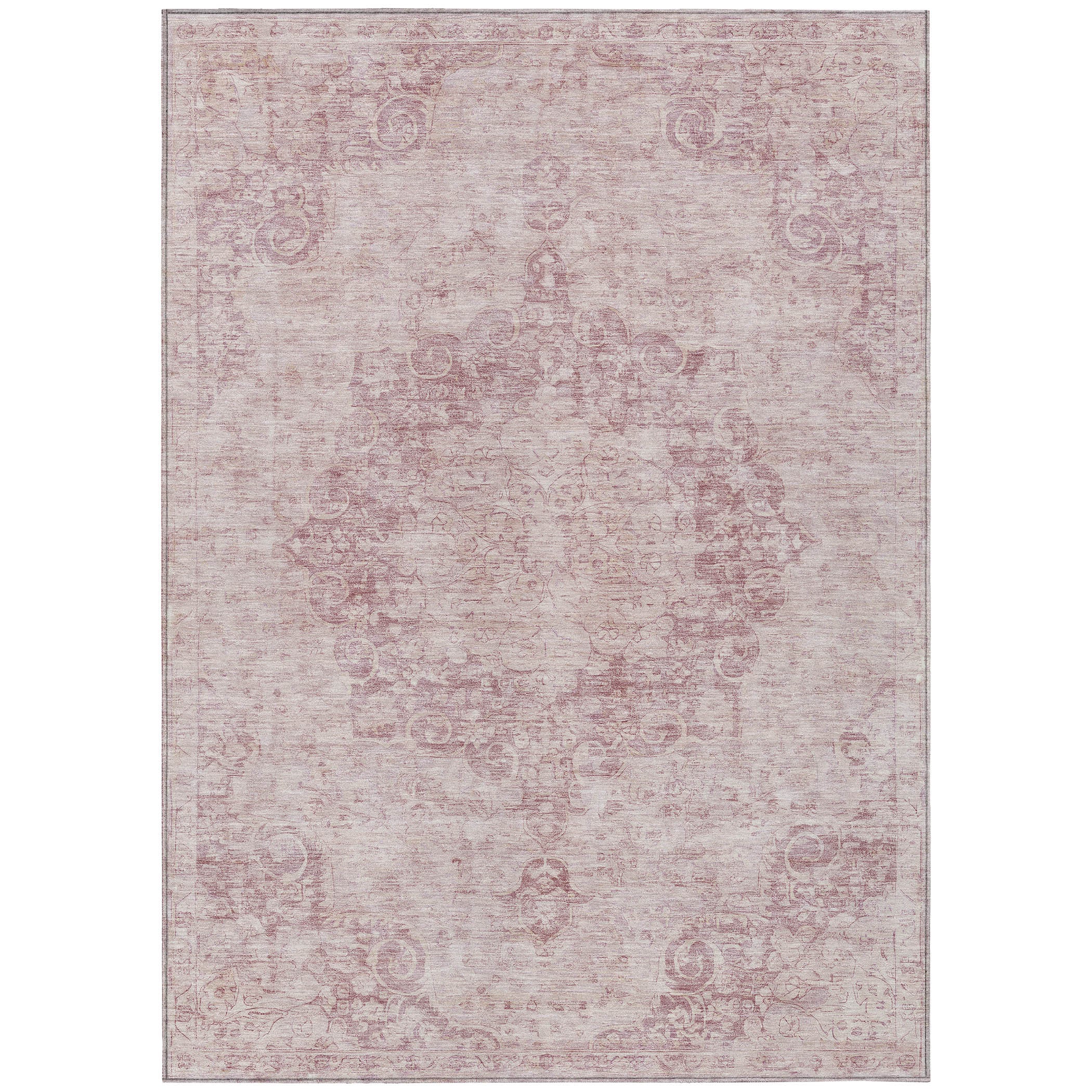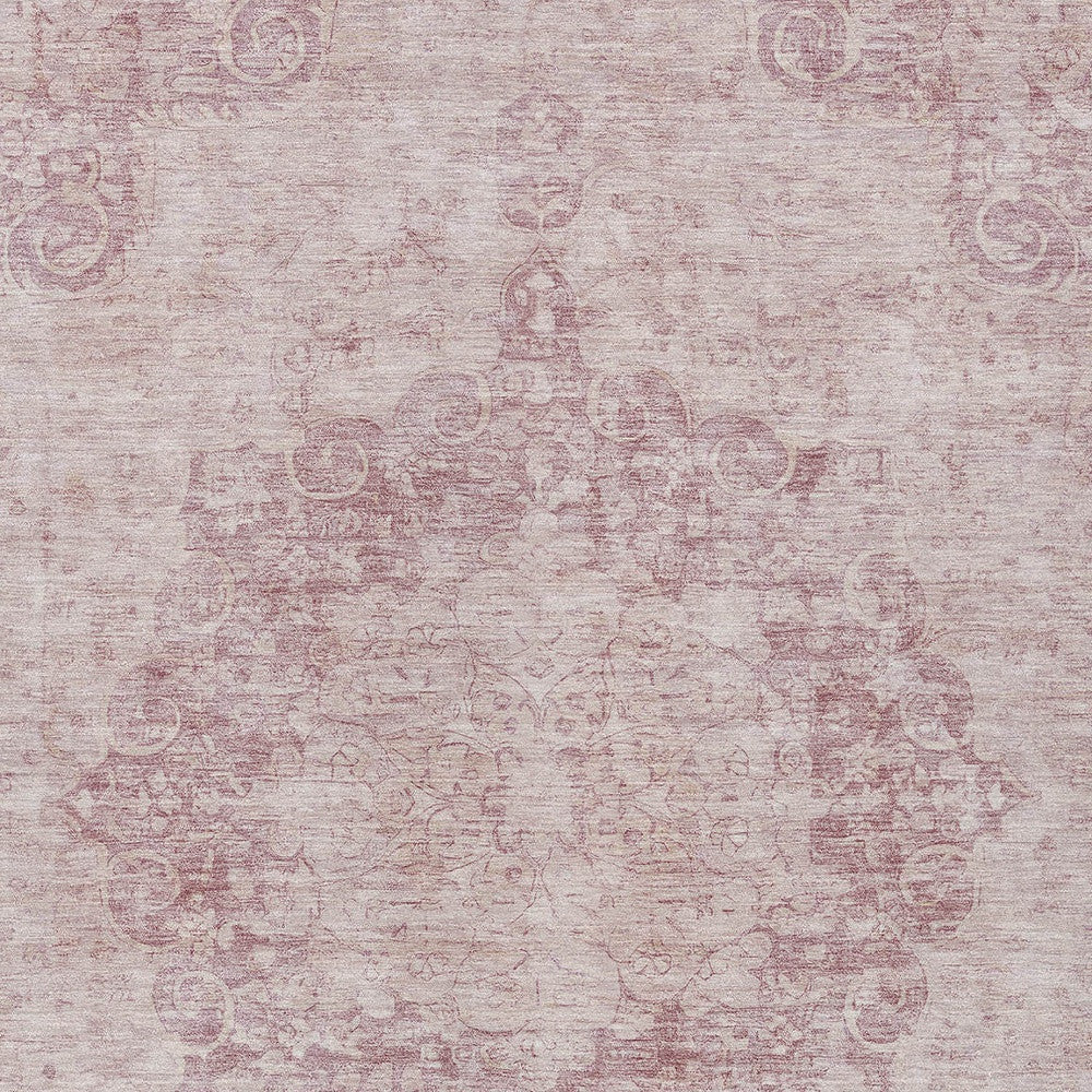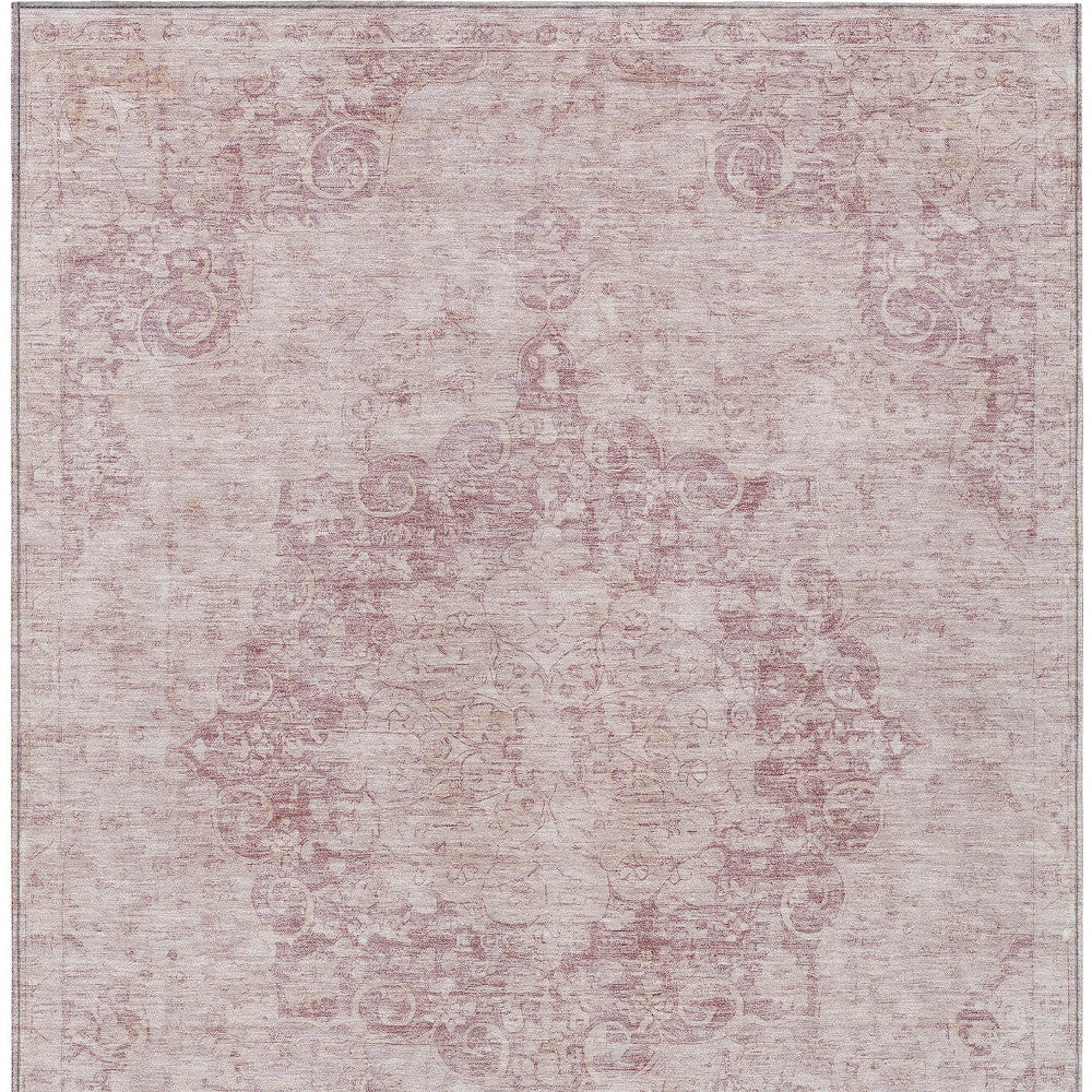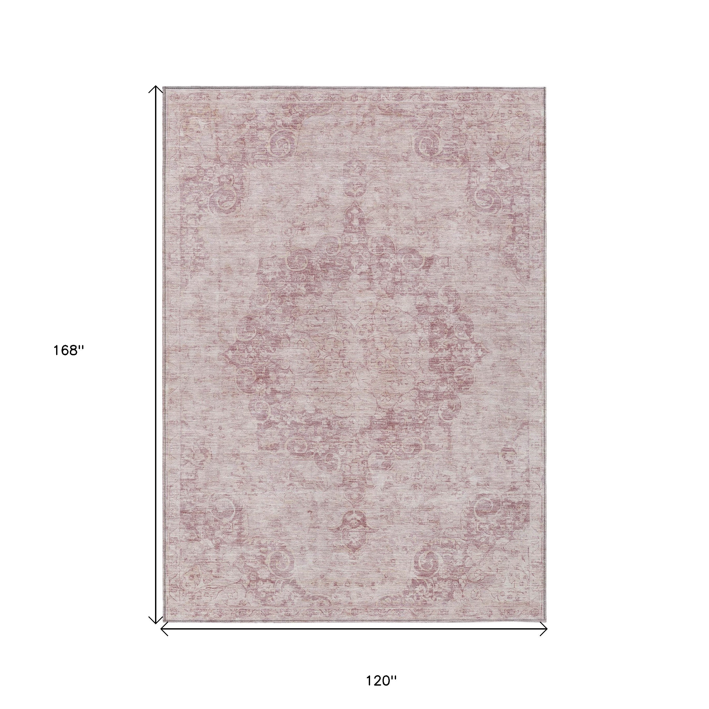 10' X 14' Pink Floral Medallion Washable Indoor Outdoor Area Rug