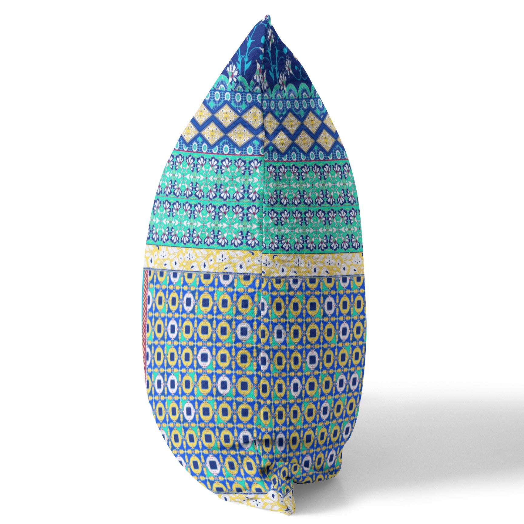 18"X18" Blue And Yellow Microsuede Patchwork Blown Seam Pillow