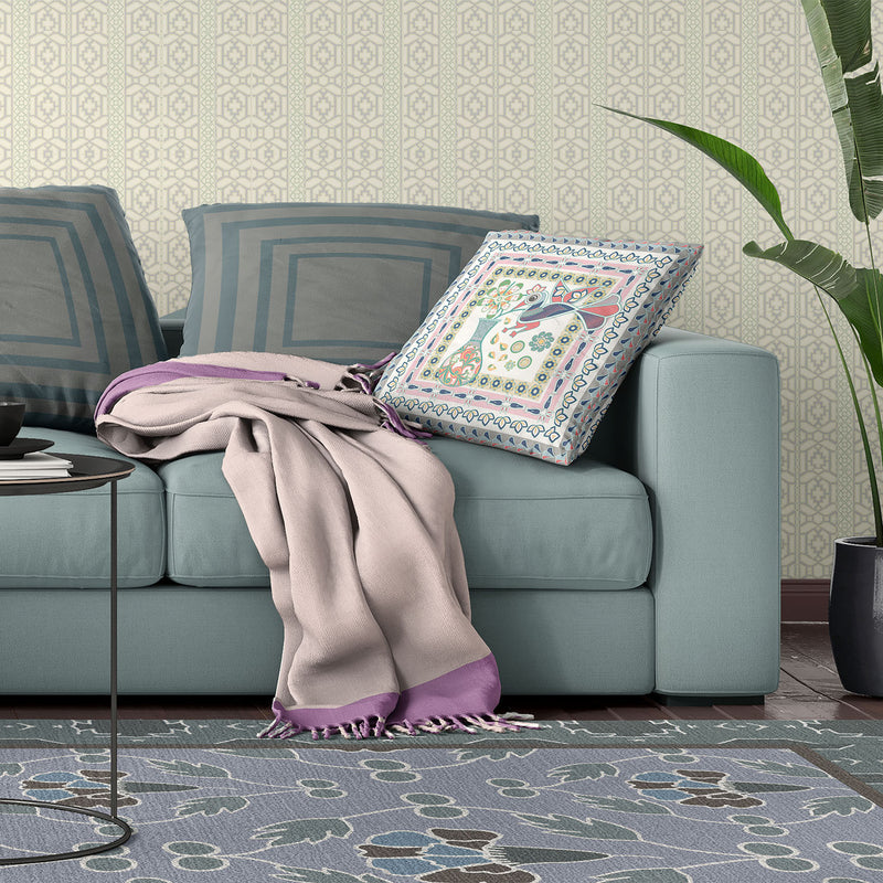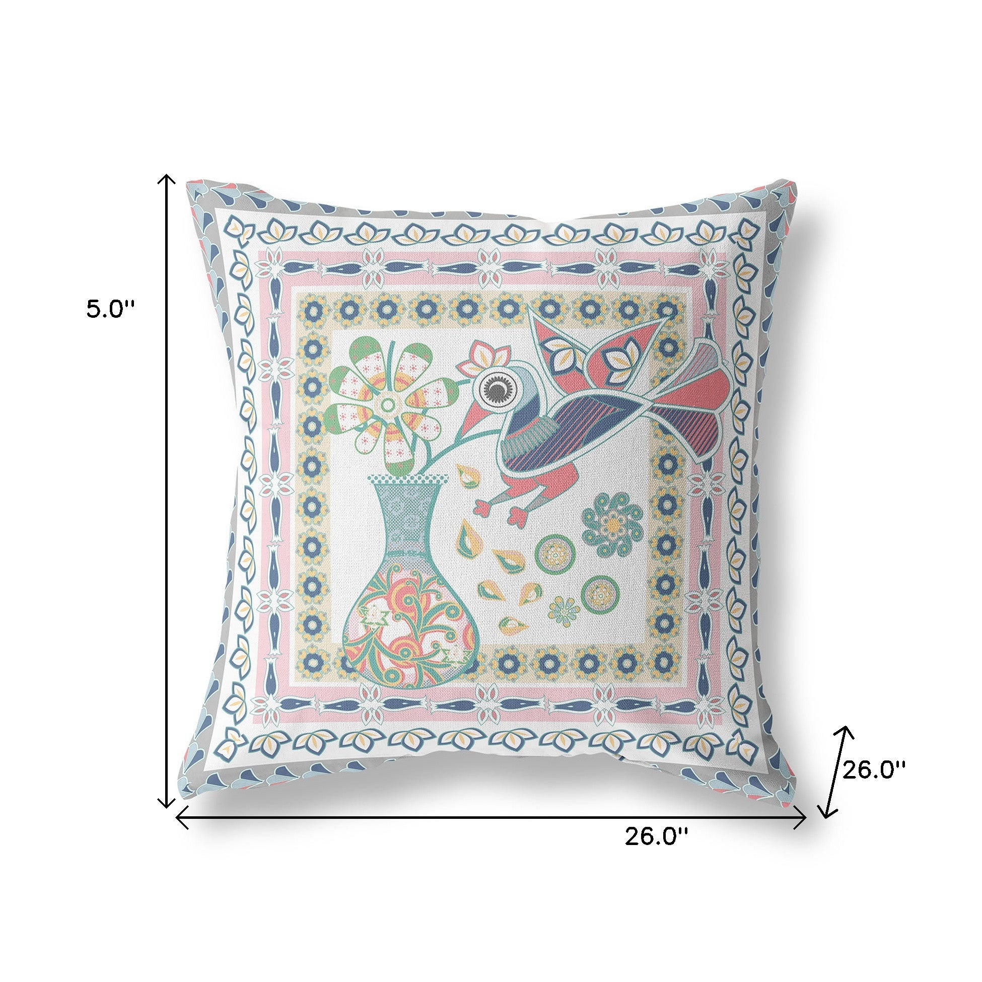 26" X 26" White And Grey Bird Blown Seam Floral Indoor Outdoor Throw Pillow