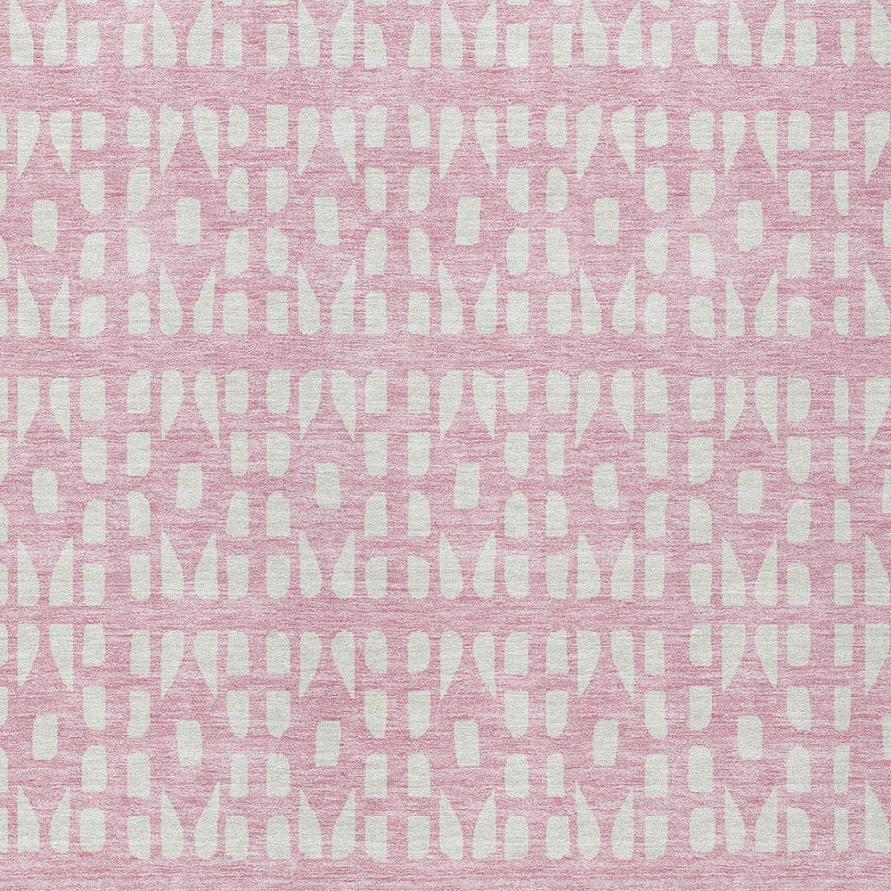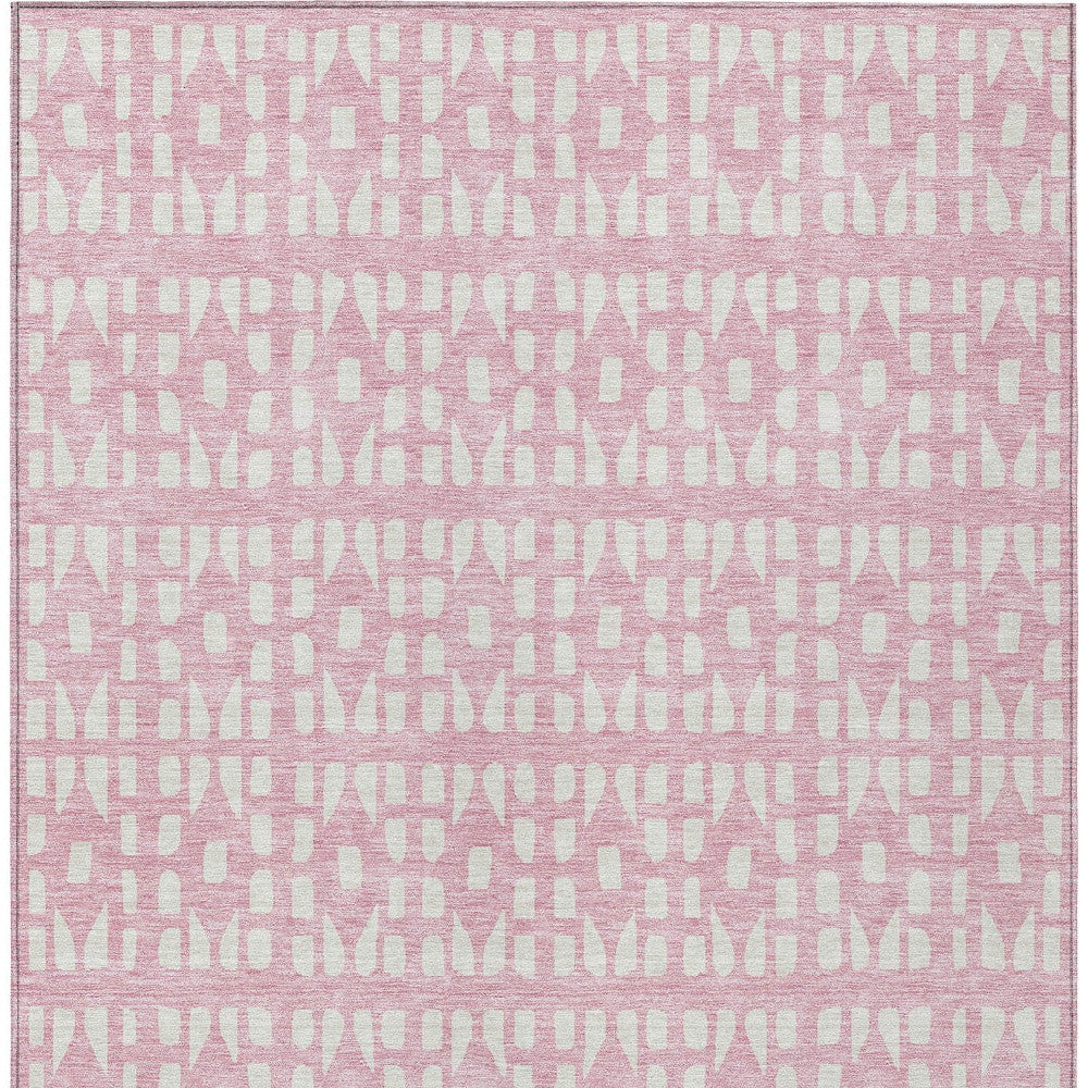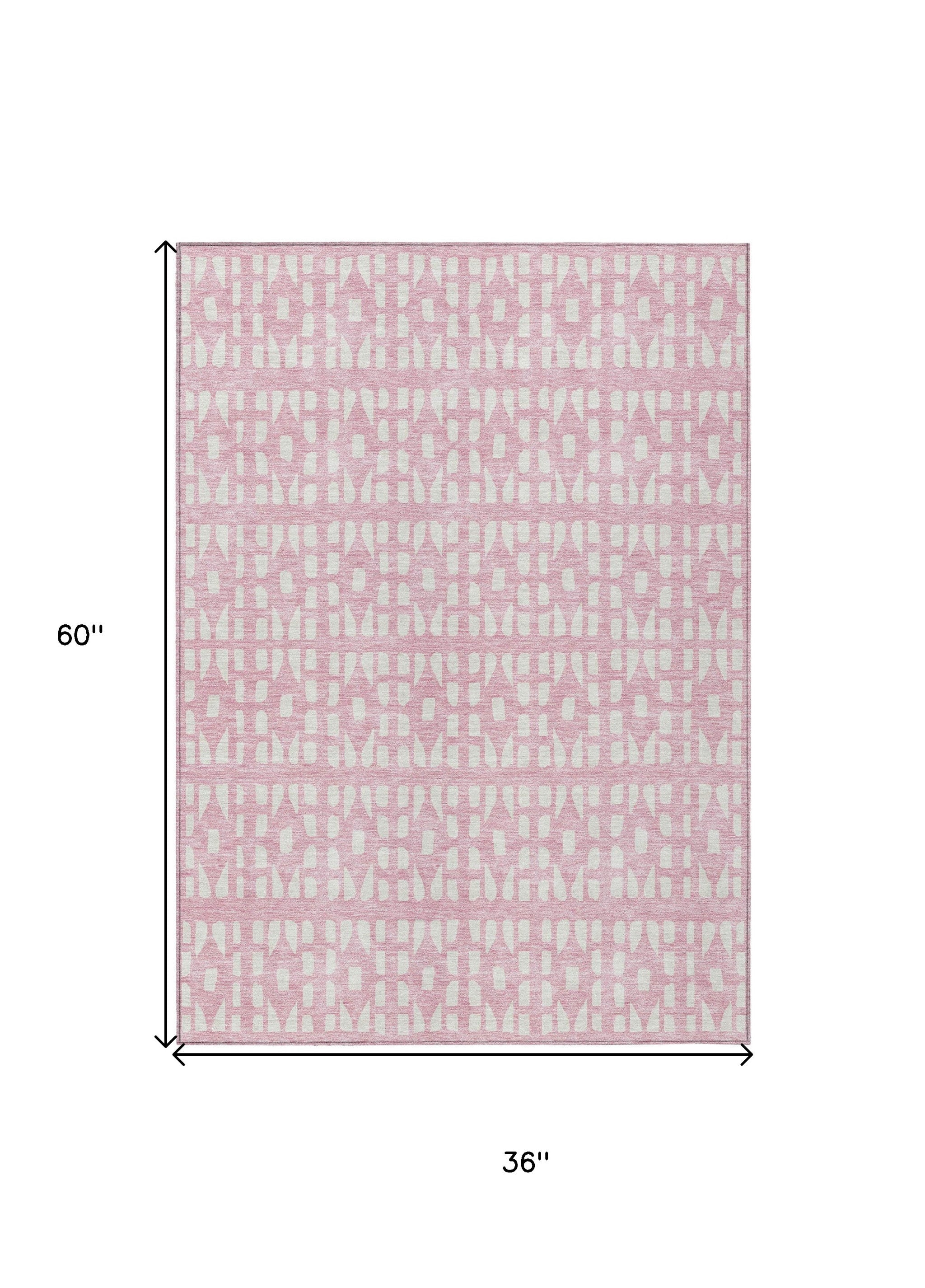 3' X 5' Pink And Ivory Geometric Washable Indoor Outdoor Area Rug