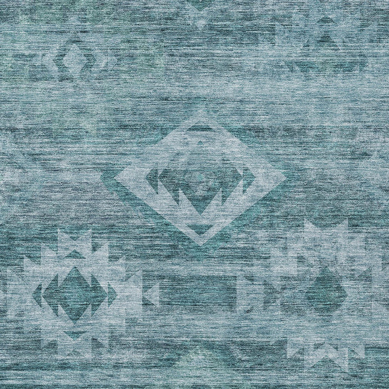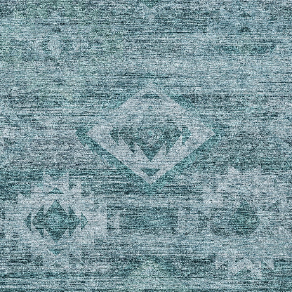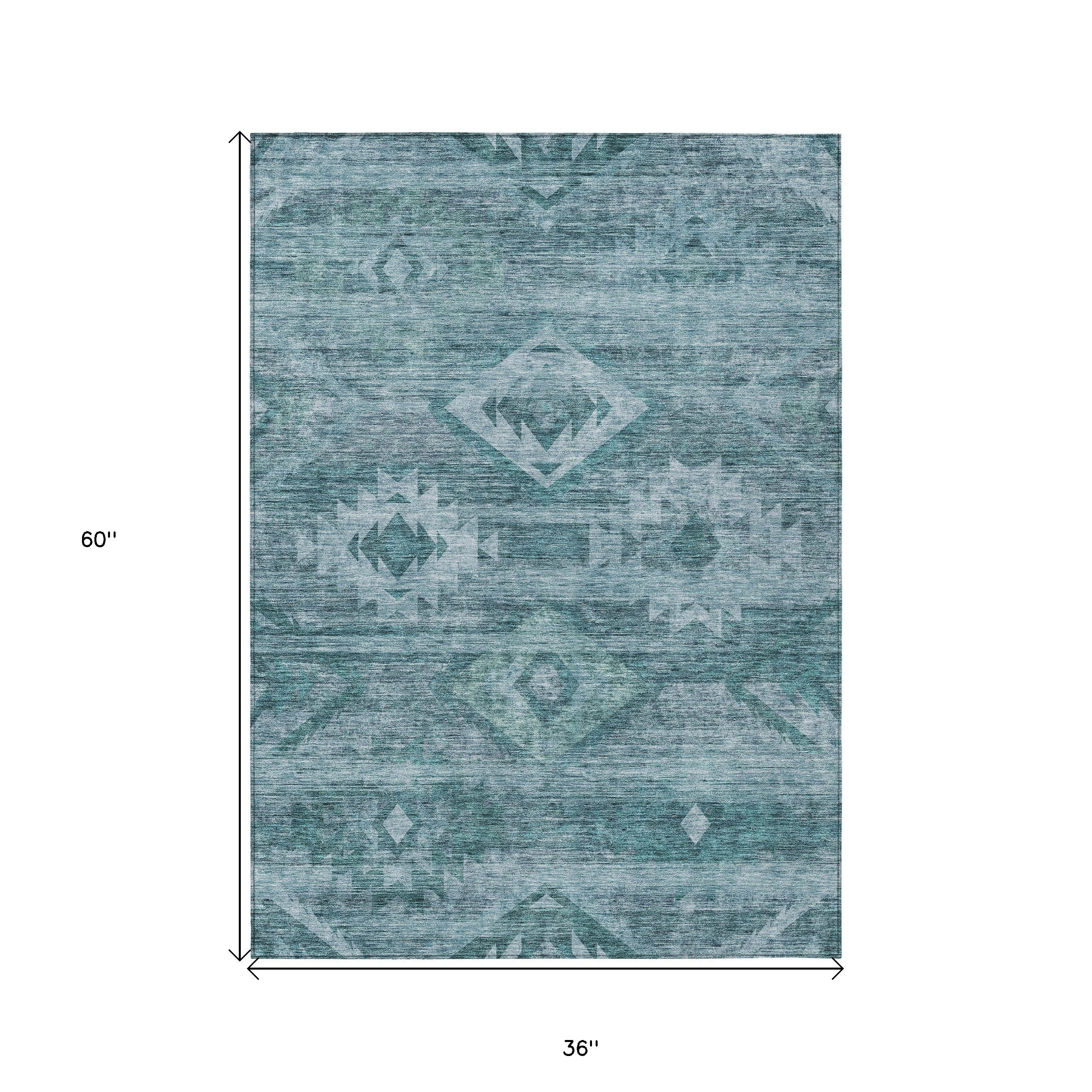 3' X 5' Teal Blue And Aqua Southwestern Washable Indoor Outdoor Area Rug