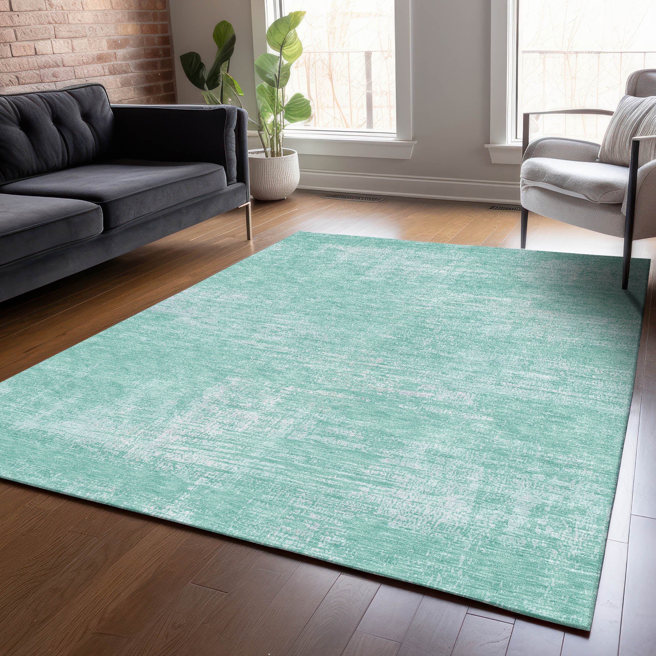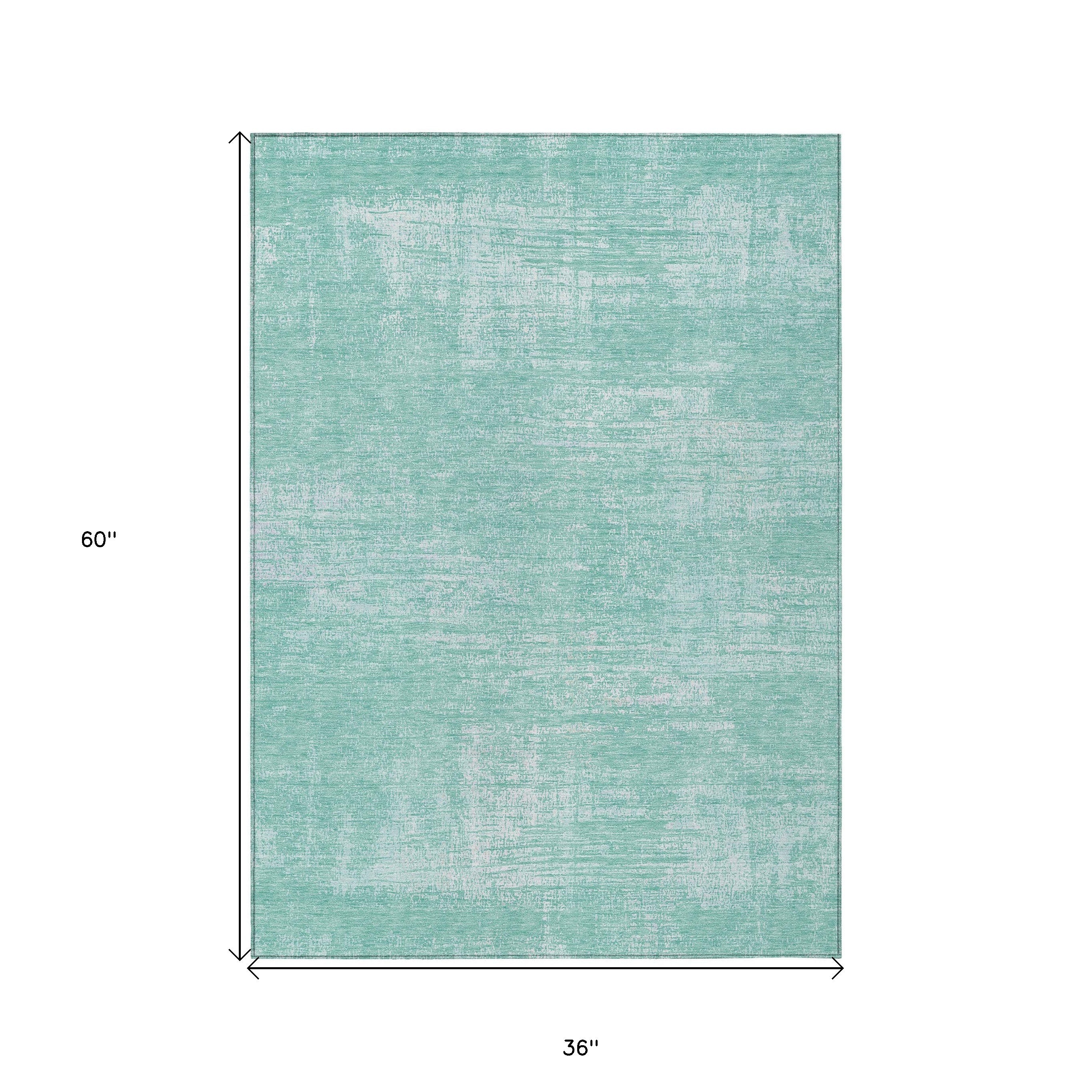 3' X 5' Turquoise And Teal Blue Abstract Washable Indoor Outdoor Area Rug