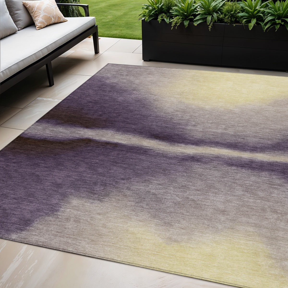 5' X 8' Plum Wheat And Ivory Abstract Washable Indoor Outdoor Area Rug