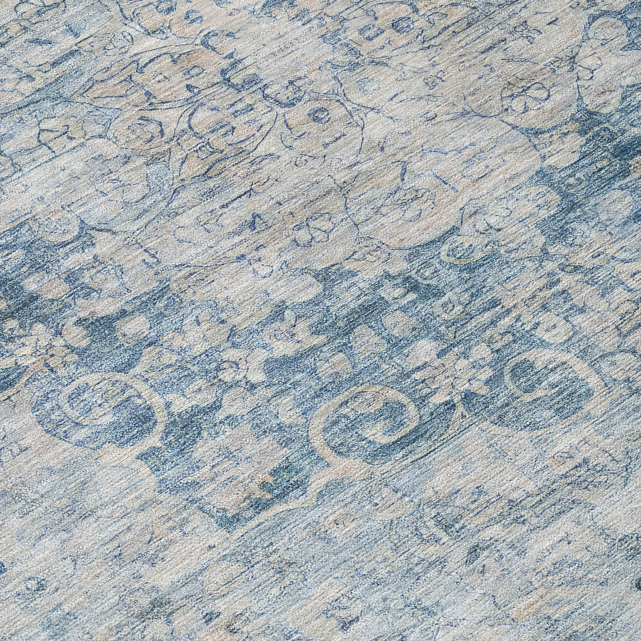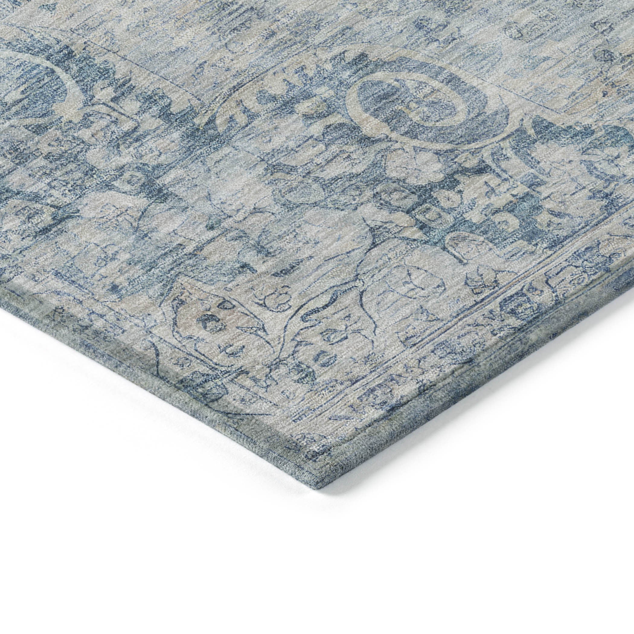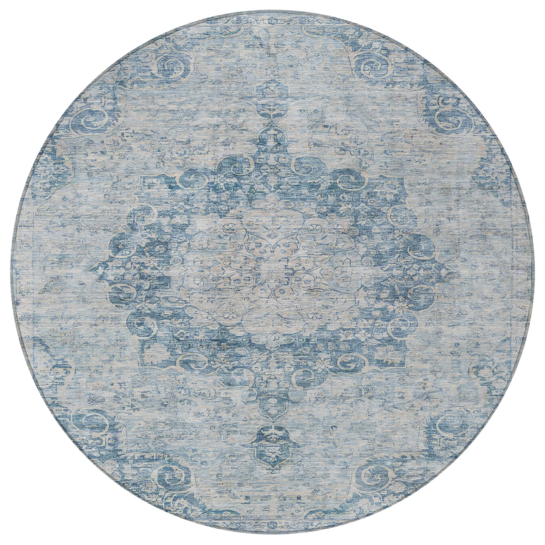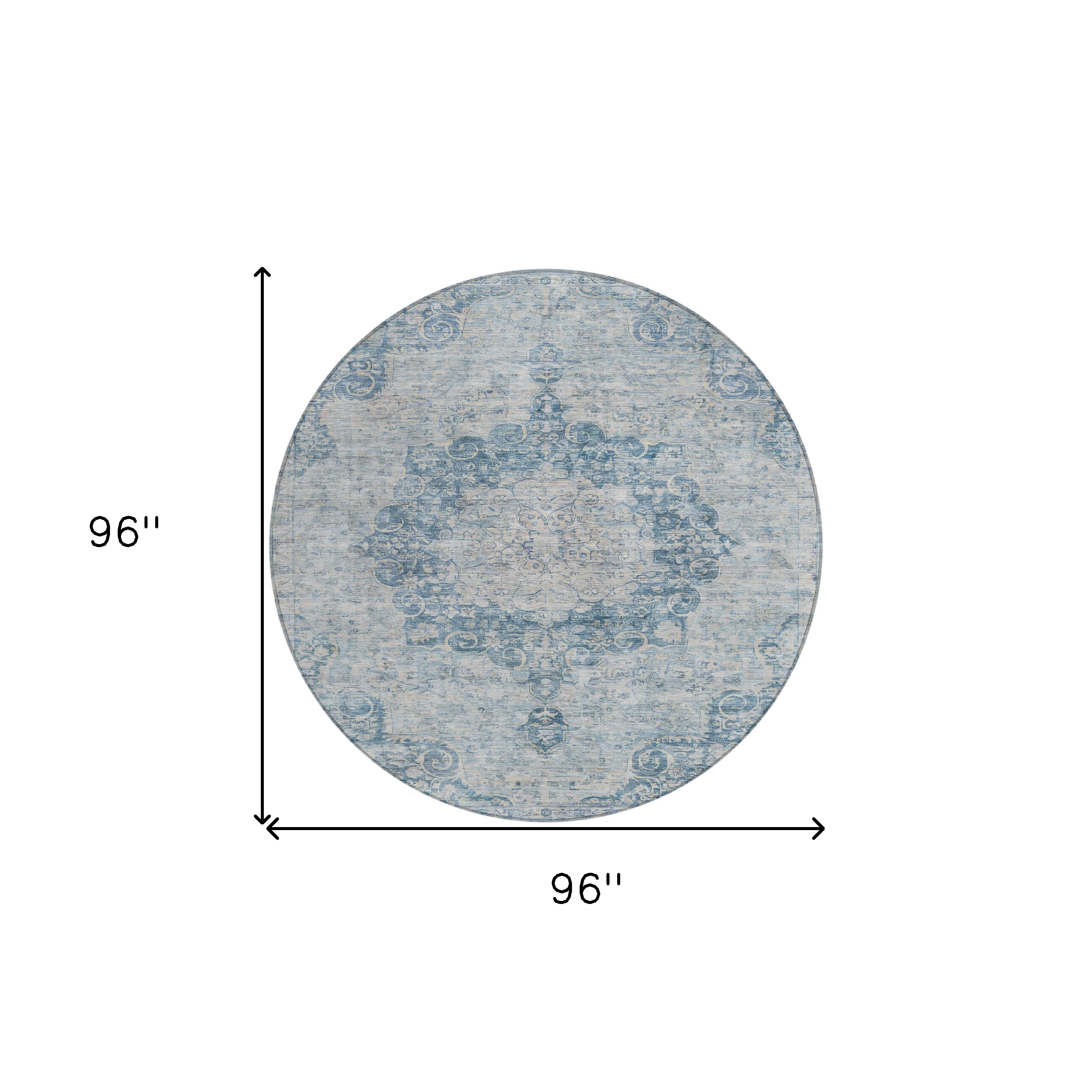 8' Blue Round Floral Medallion Washable Indoor Outdoor Area Rug