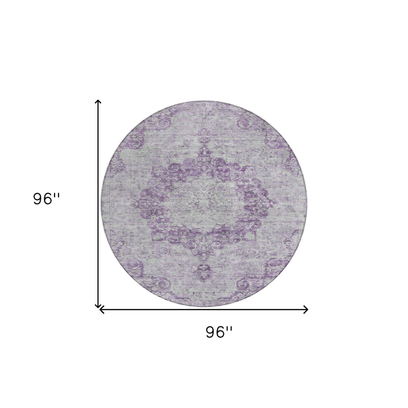 8' Purple Round Floral Medallion Washable Indoor Outdoor Area Rug