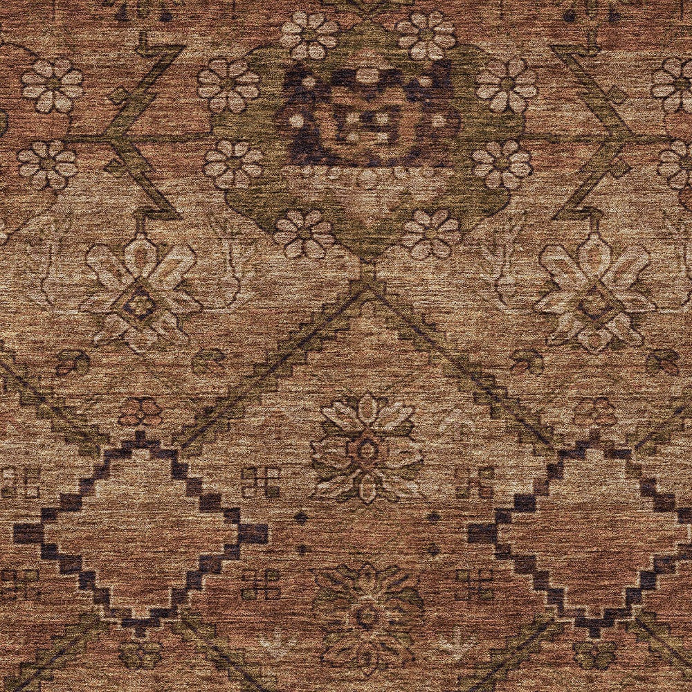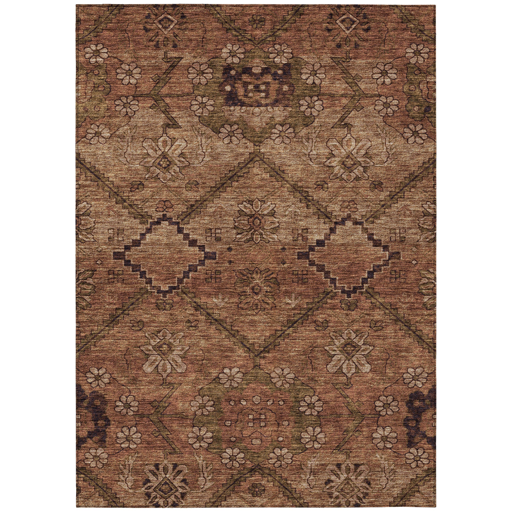 8' X 10' Orange Copper And Brown Floral Washable Indoor Outdoor Area Rug