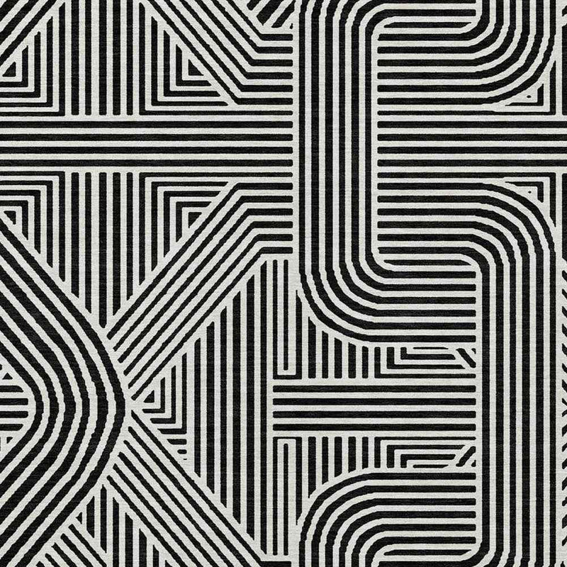 9' X 12' Black And Ivory Abstract Washable Indoor Outdoor Area Rug