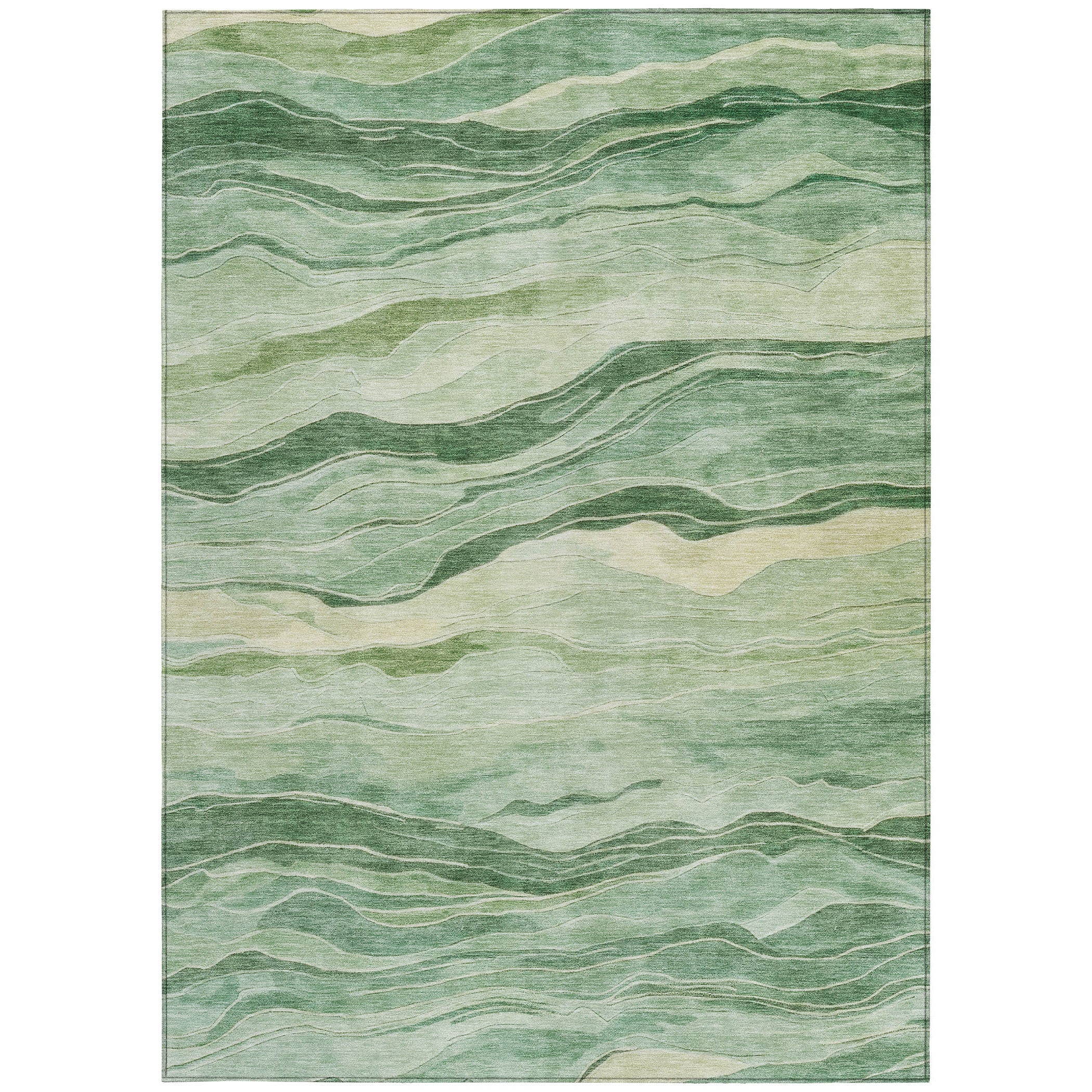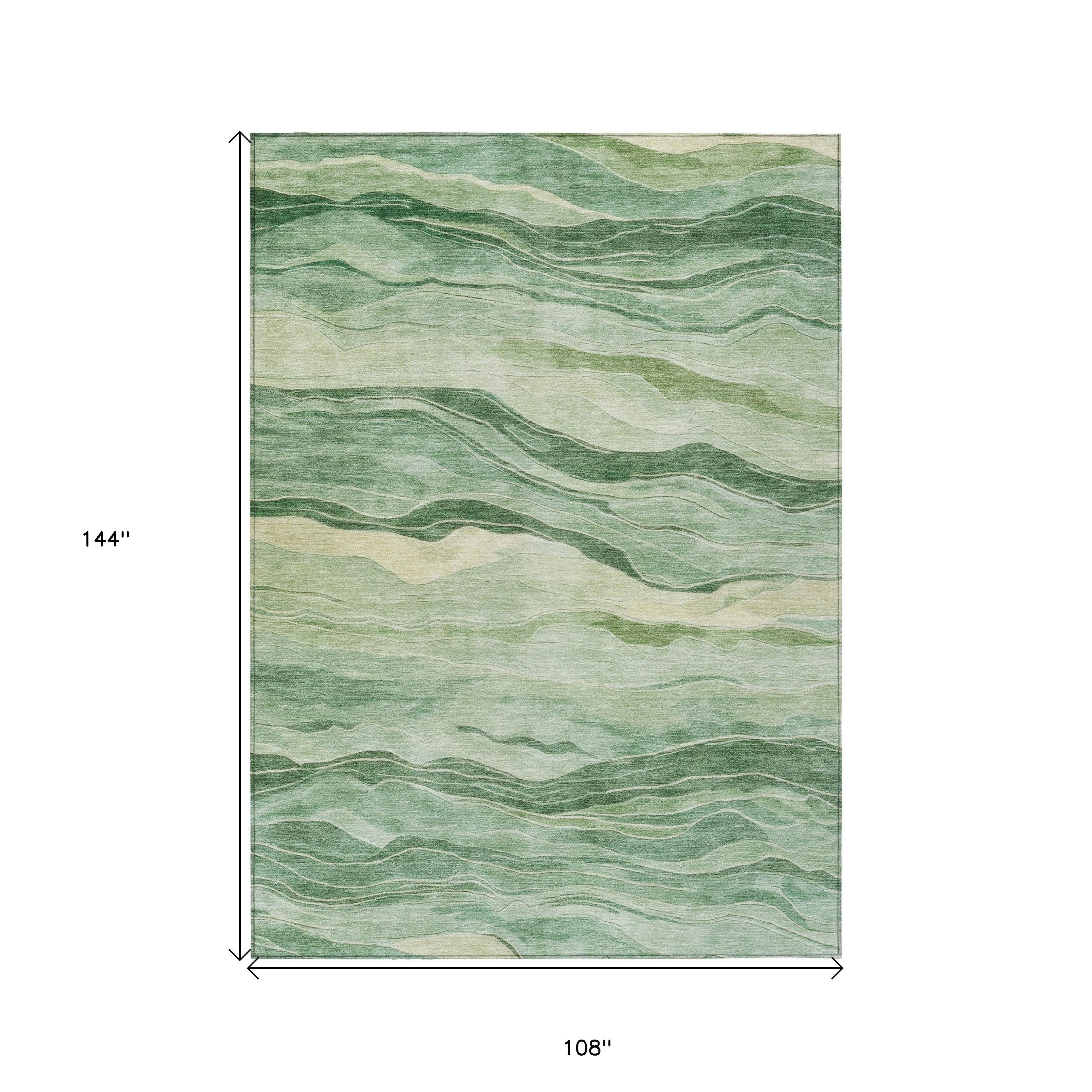 9' X 12' Green Striped Washable Indoor Outdoor Area Rug