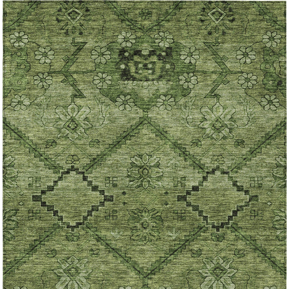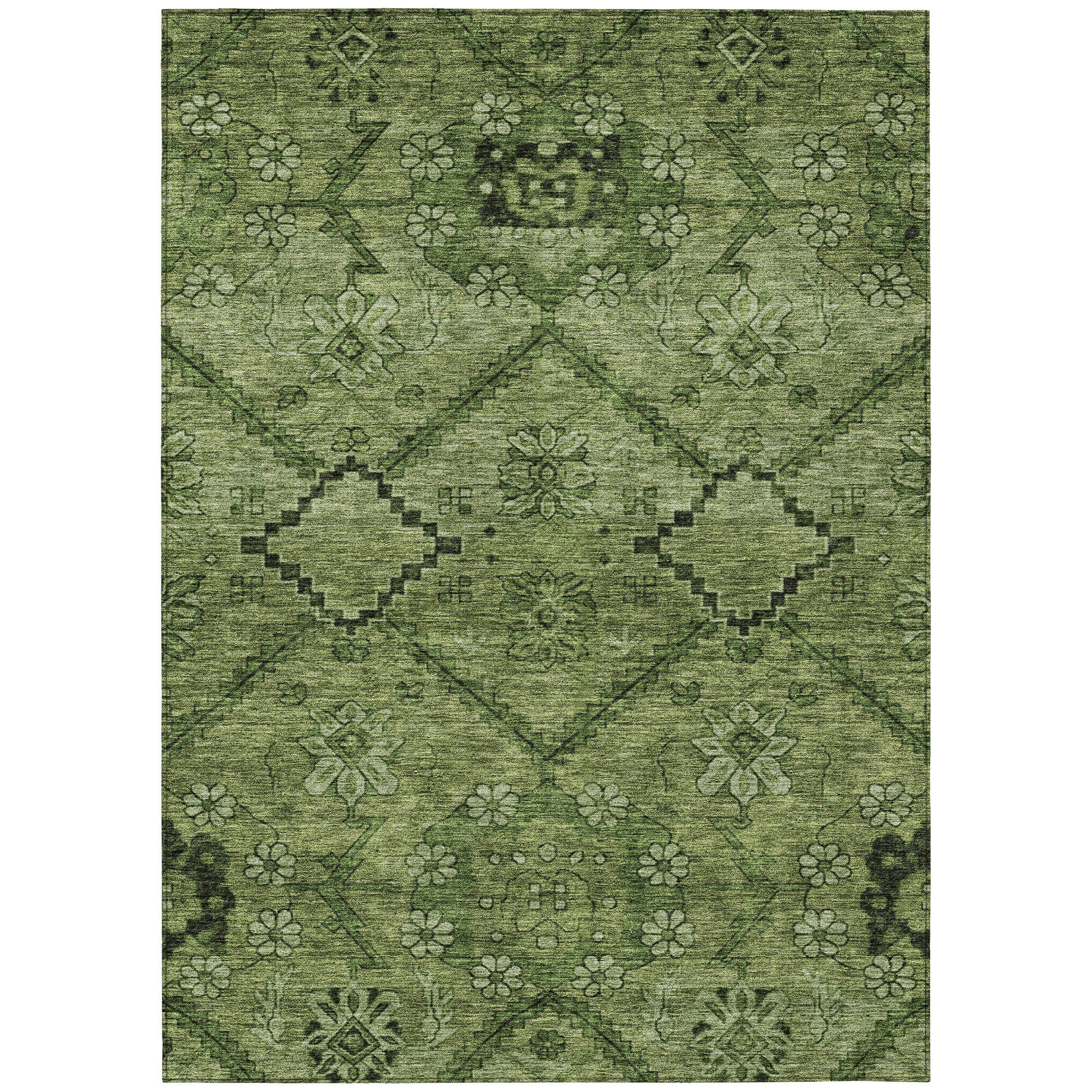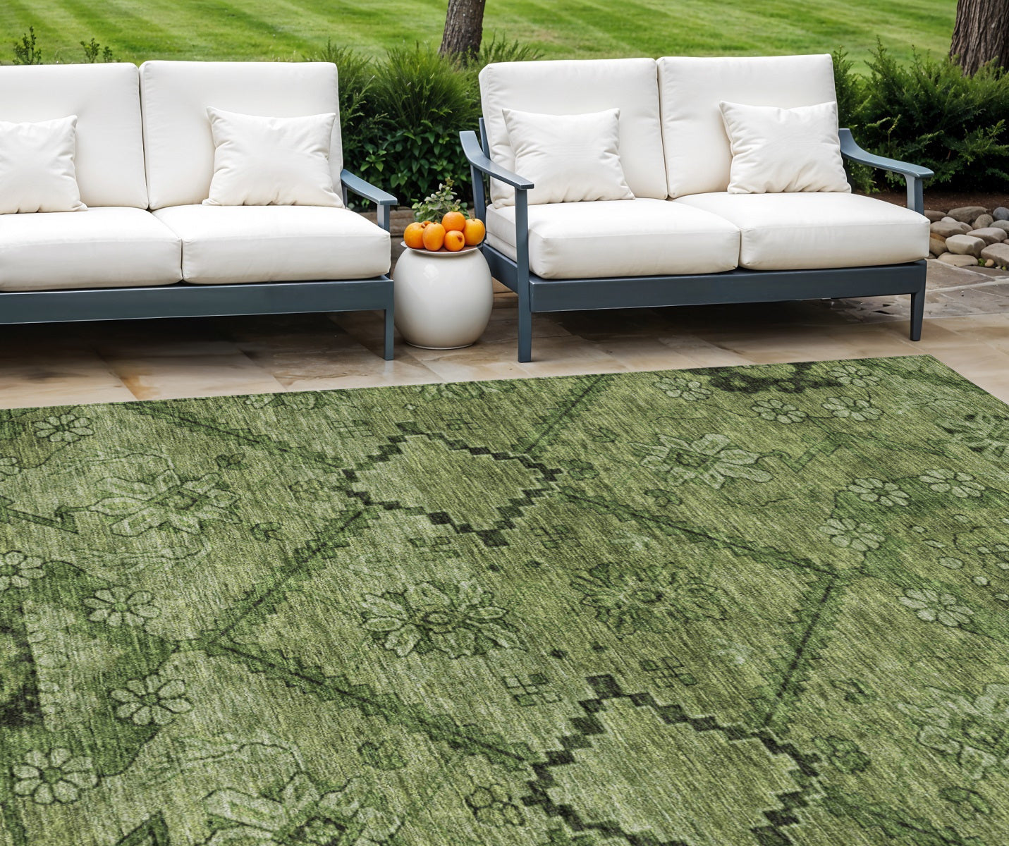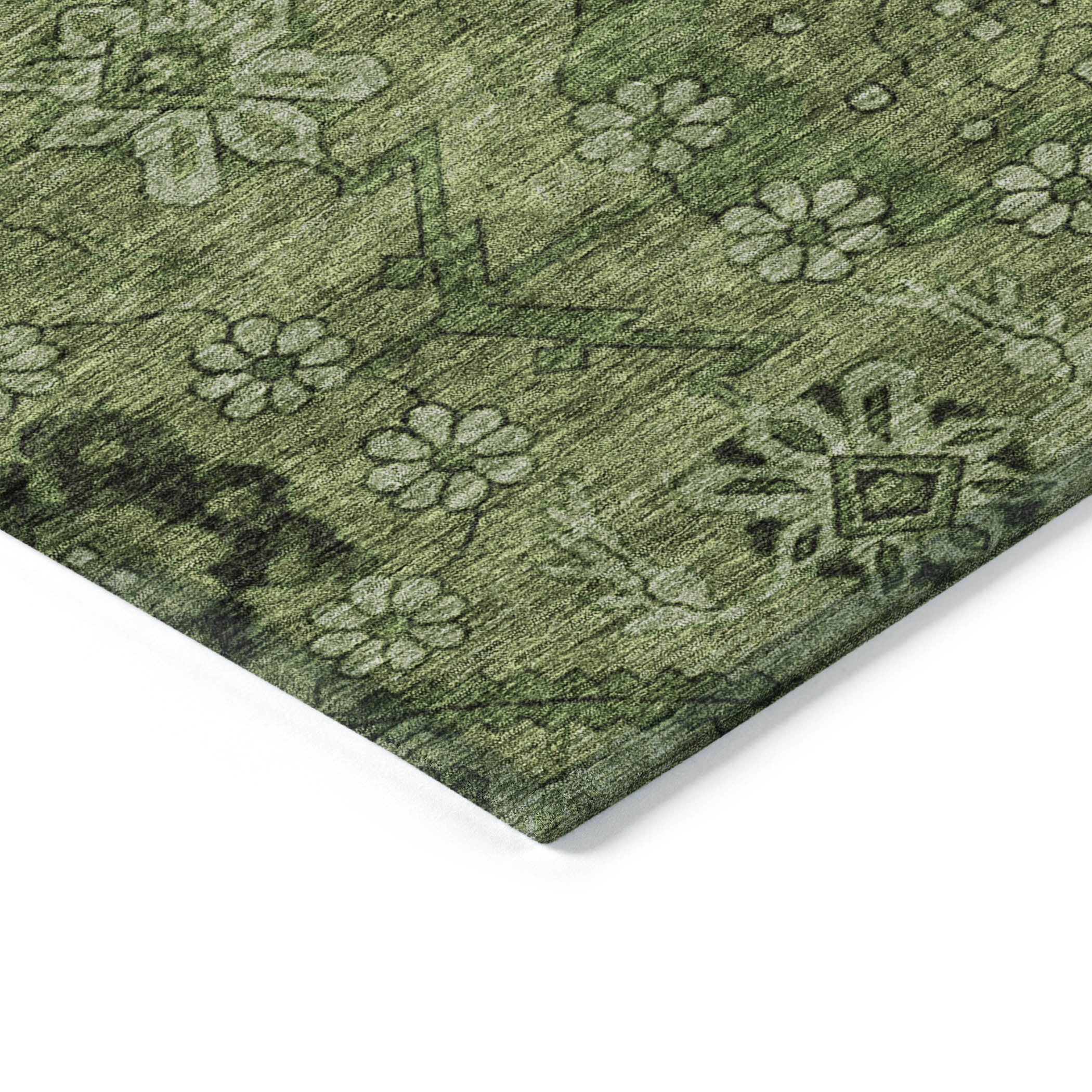 9' X 12' Olive Green Fern Green And Artichoke Green Floral Washable Indoor Outdoor Area Rug