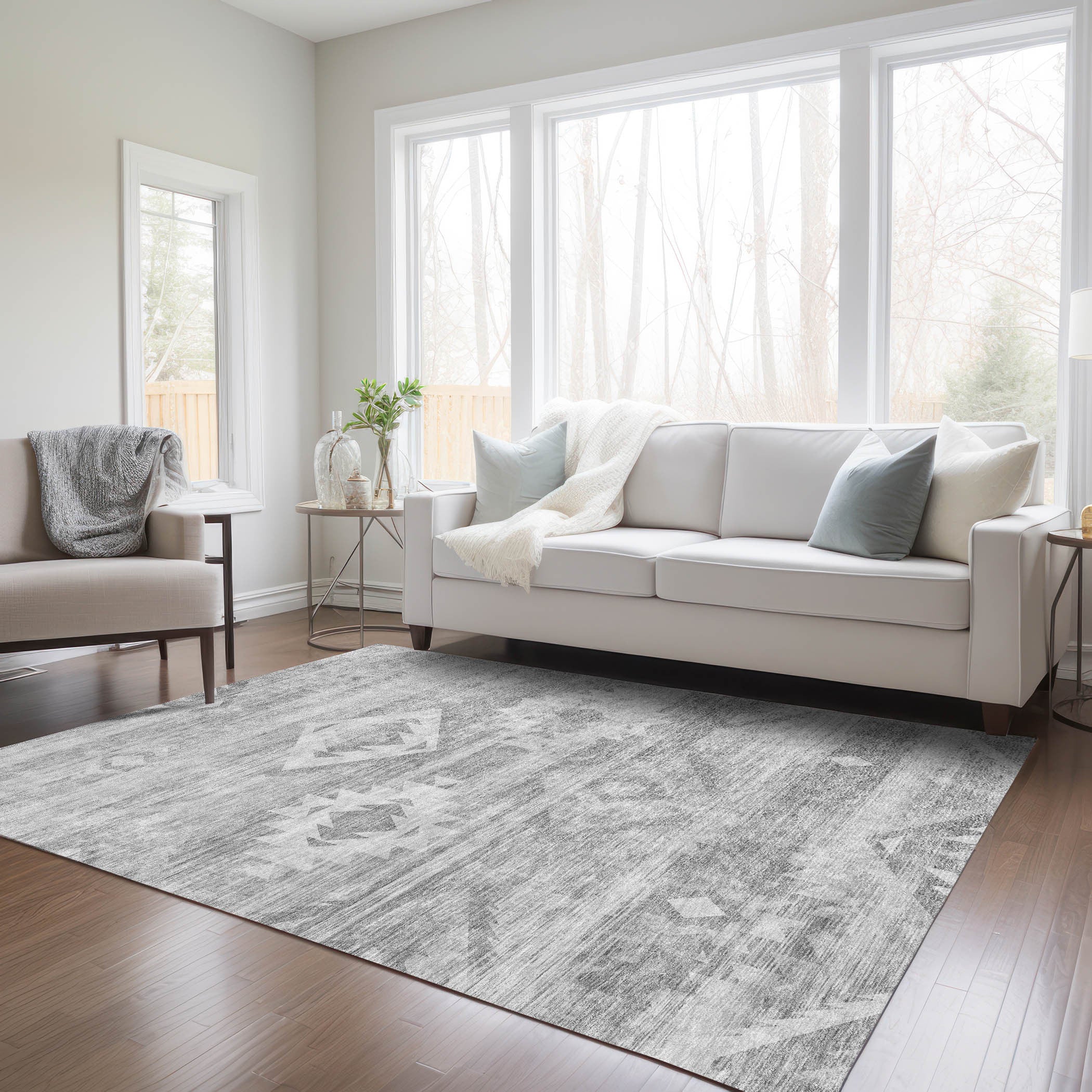 9' X 12' Silver Gray And Charcoal Southwestern Washable Indoor Outdoor Area Rug