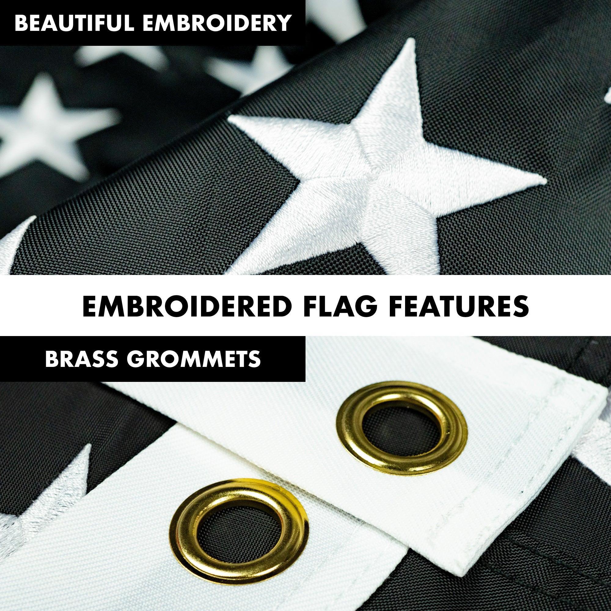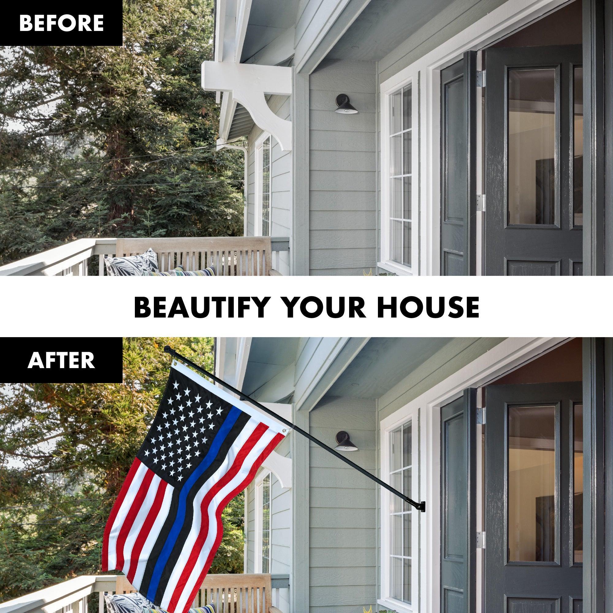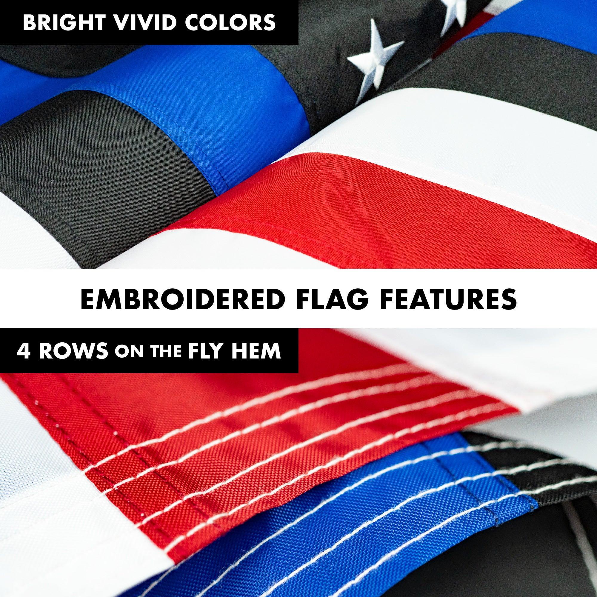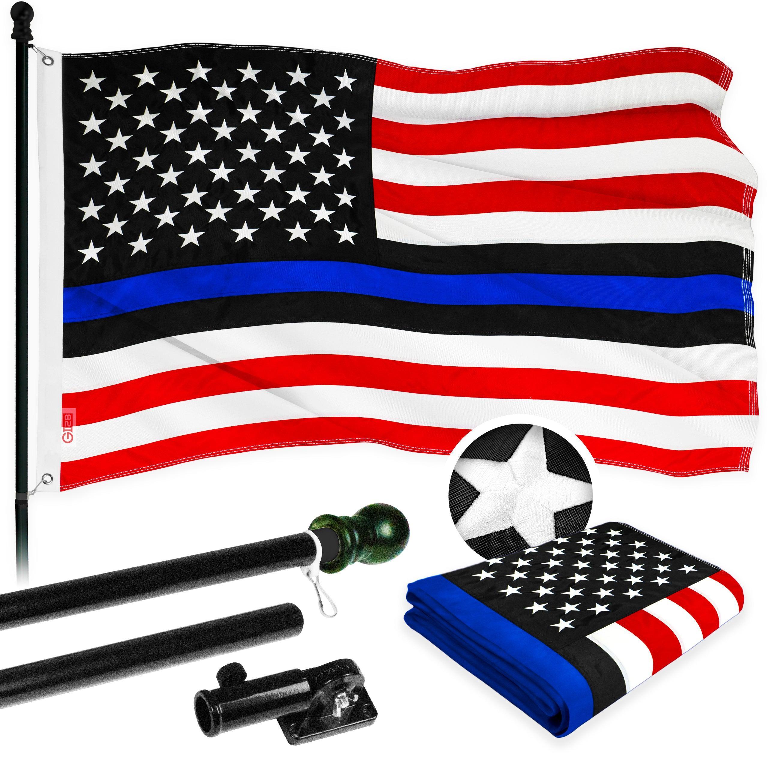 G128 - 6 Feet Tangle Free Spinning Flagpole (Black) Blue Lives Matter Flag Brass Grommets Embroidered 3x5 ft (Flag Included) Aluminum Flag Pole