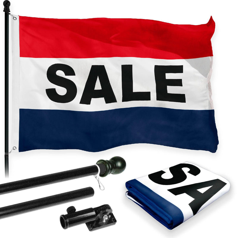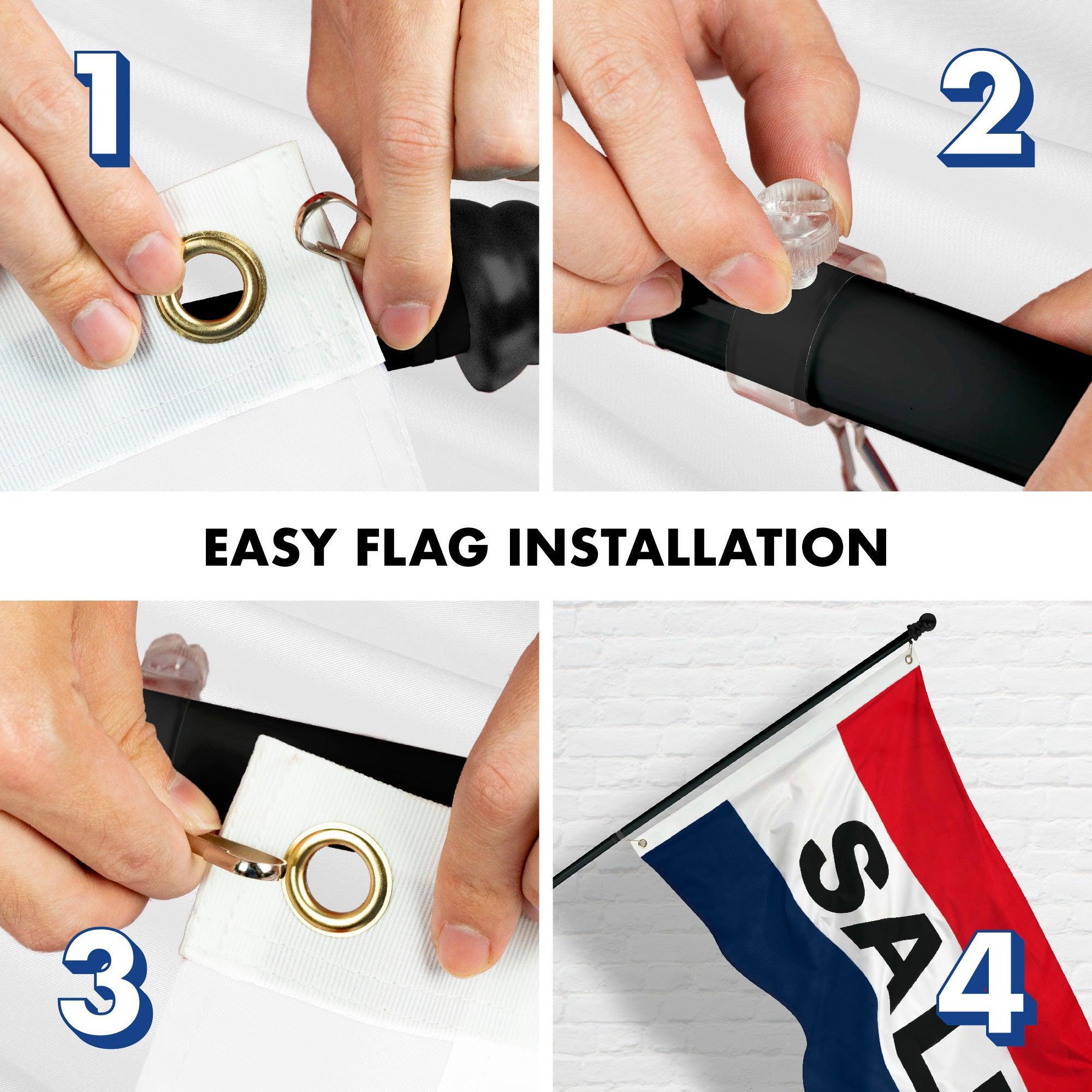G128 Combo Pack: 6 Feet Tangle Free Spinning Flagpole (Black) Sale Flag 3x5 ft Printed 150D Brass Grommets (Flag Included) Aluminum Flag Pole