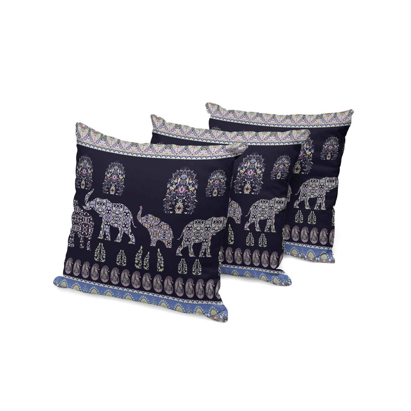 Set of Three 16" X 16" Blue and Purple Elephant Paisley Indoor Outdoor Throw Pillow