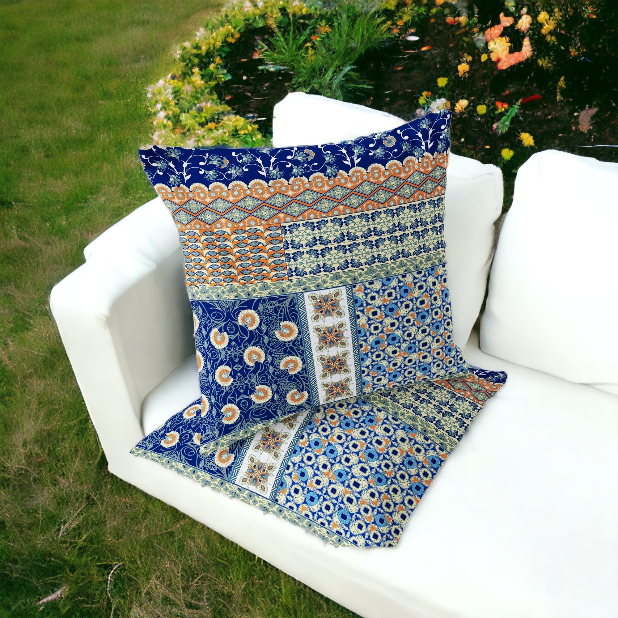 Set of Two 16" X 16" Blue and Orange Blown Seam Floral Indoor Outdoor Throw Pillow