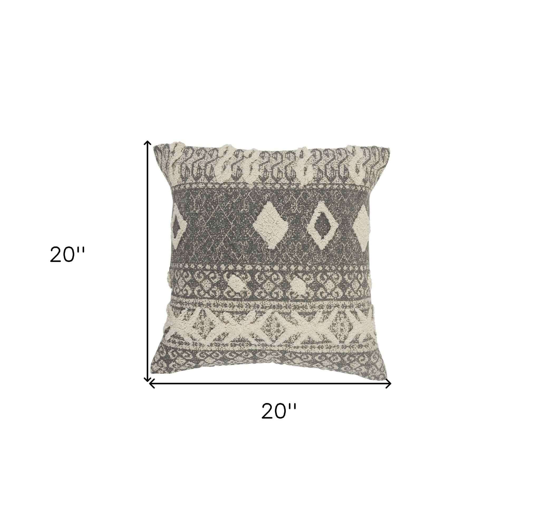 20" X 20" Gray And White 100% Cotton Geometric Zippered Pillow