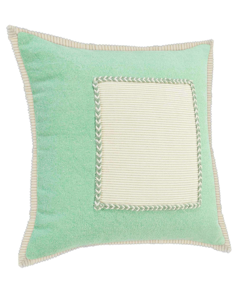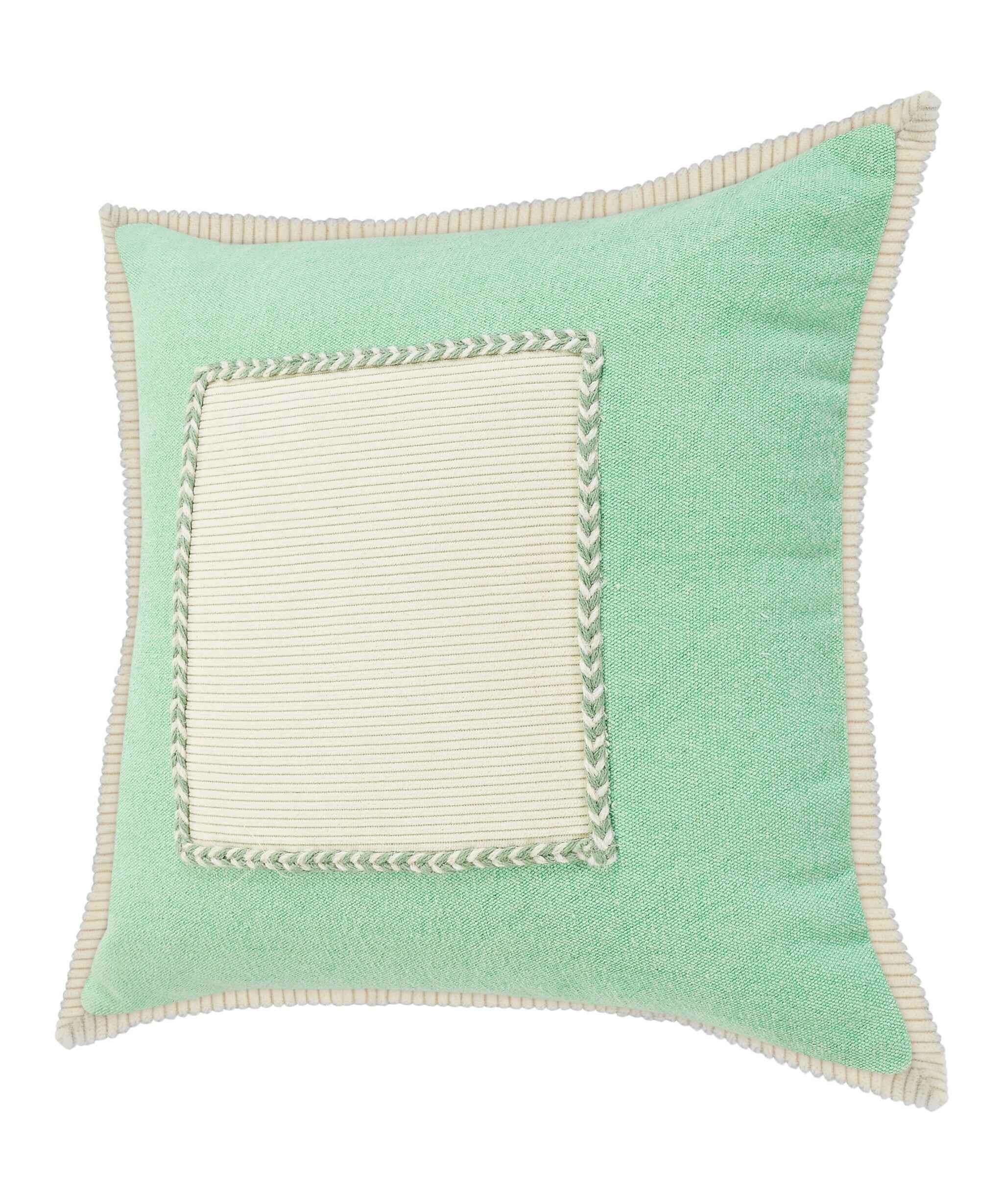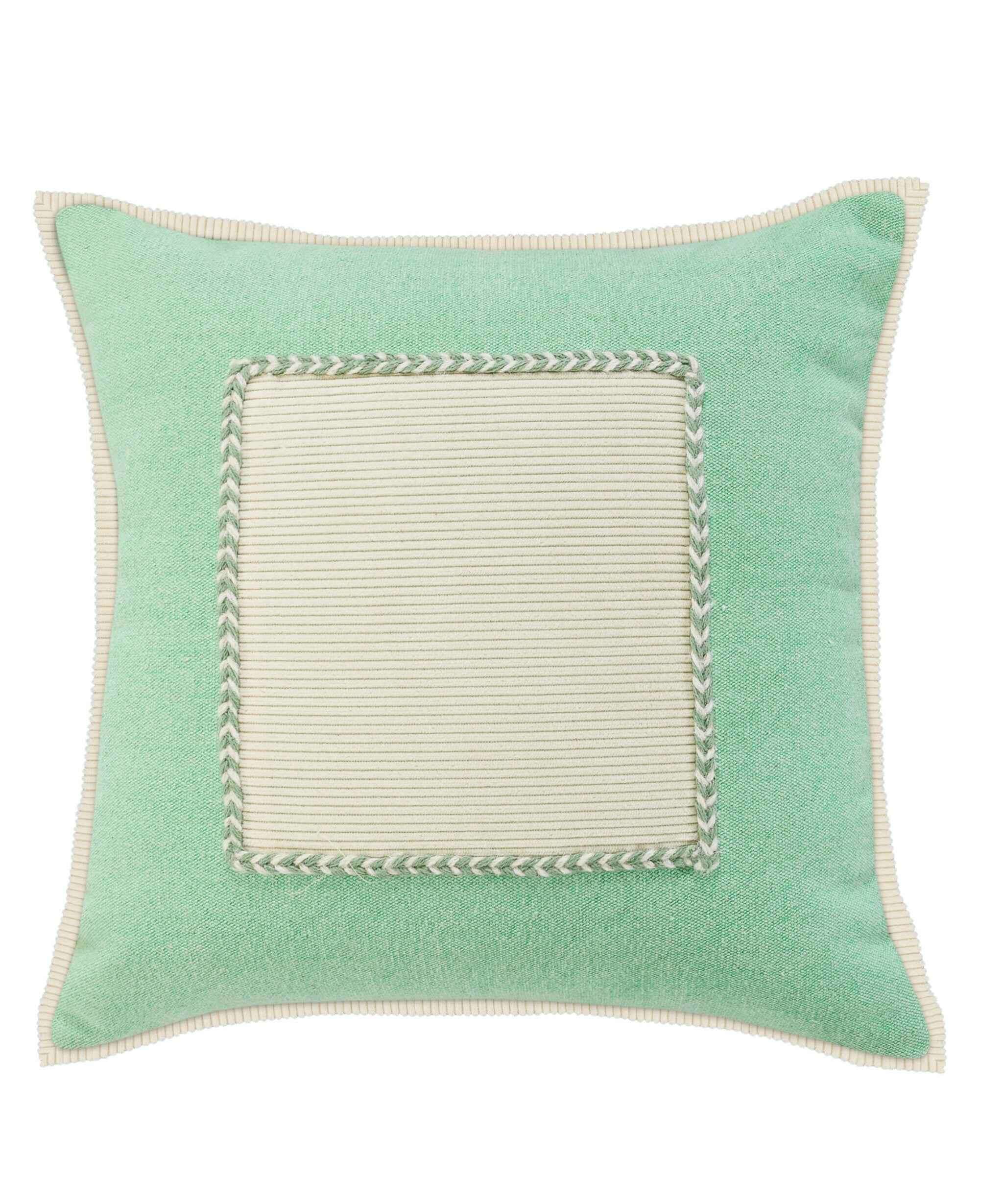20" X 20" Pastel Green And Cream 100% Cotton Zippered Pillow