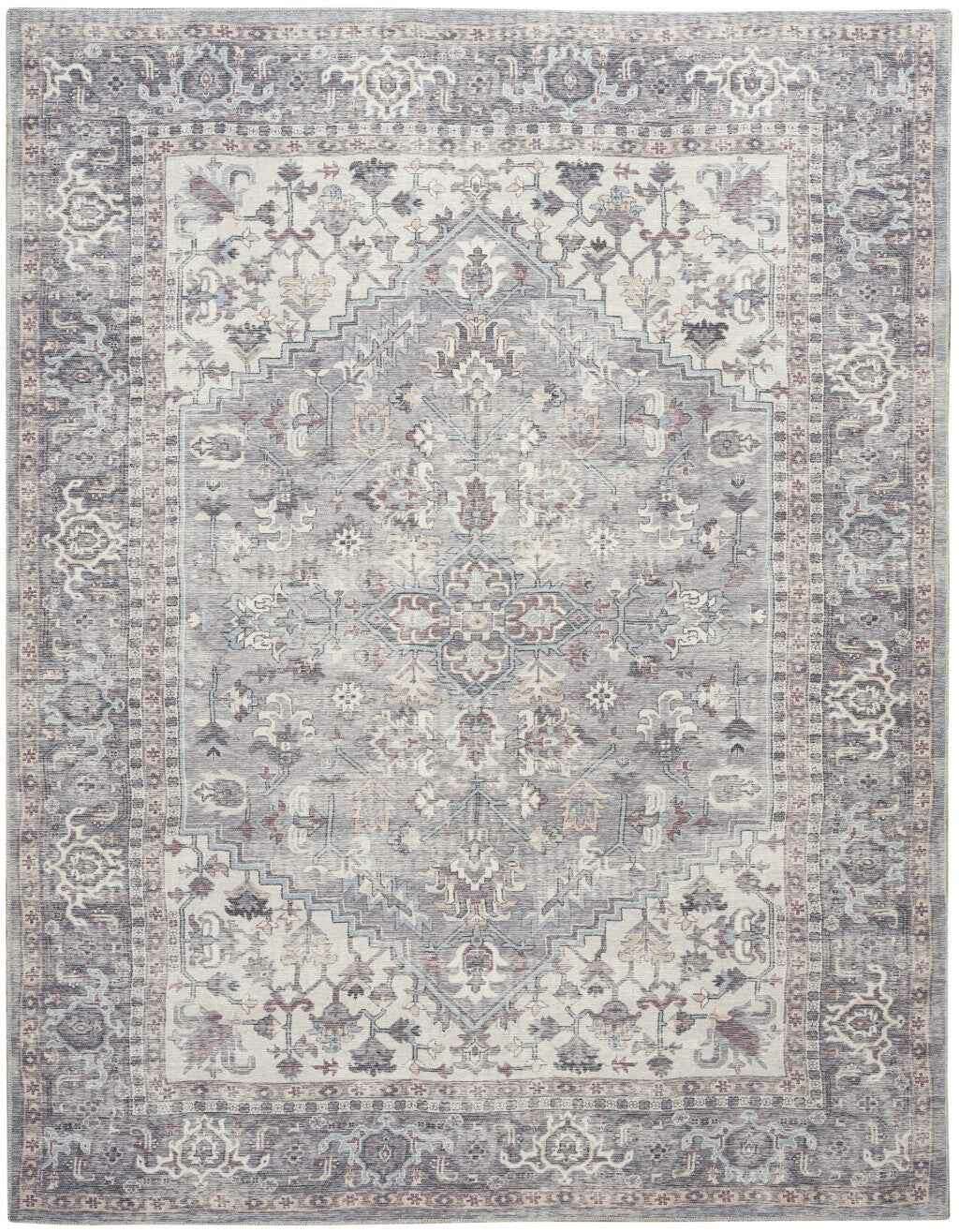Add some artistry to your room with this 8' x 10' gray floral power loom distressed area rug. This rectangle shaped rug features a floral design in gray to give it visual interest. A classic shape marries with good looking design for your space The coloring of this rug adds a delightfully neutral tone to your home and will easily match with most any decor. Made in Turkey, this rug offers high quality combined with good looking designer sensibilities. Place this area rug against a hardwood or tile floor and it will enliven your living space with style and sophistication. .28" H x 94.00" W x 118.00" D