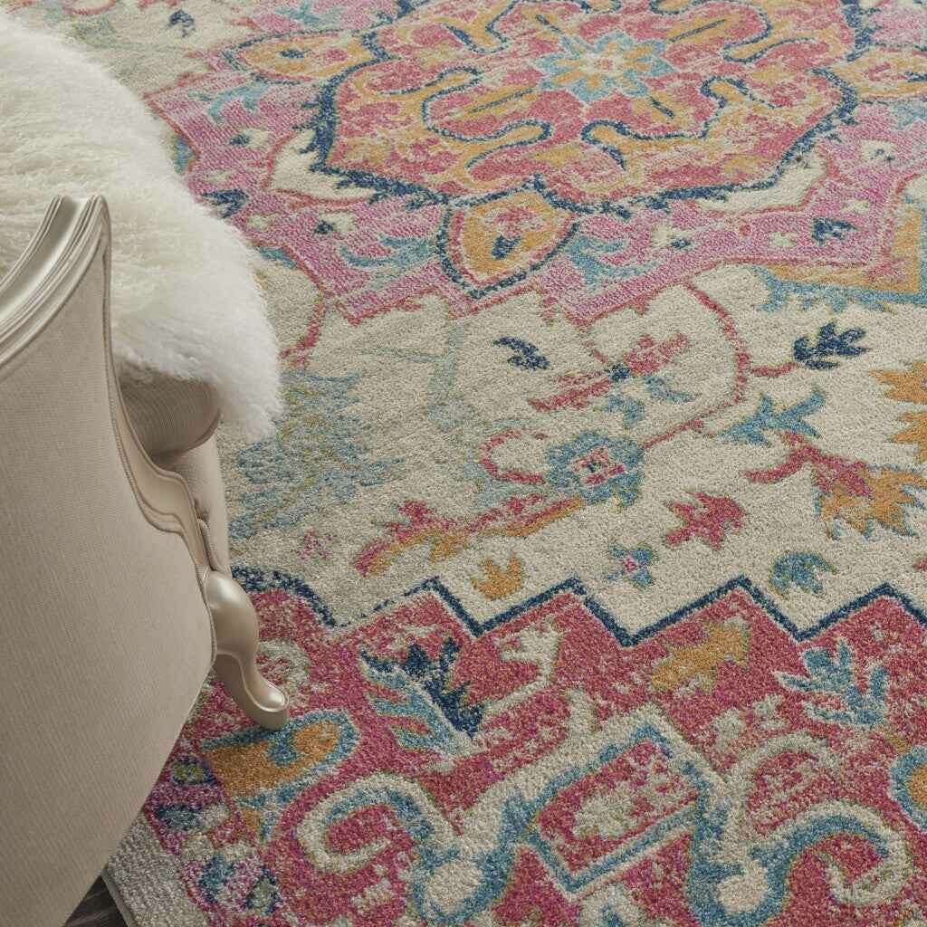 Add some artistry to your room with this 8' x 10' pink and ivory southwestern dhurrie area rug. This rectangle shaped rug features a southwestern design in pink and ivory to give it visual interest. A classic shape marries with good looking design for your space This superior Turkish rug represents the highest quality and is built to last. Area Rugs help to give warmth and sense of home to your space. 1" H x 96" W x 120" D