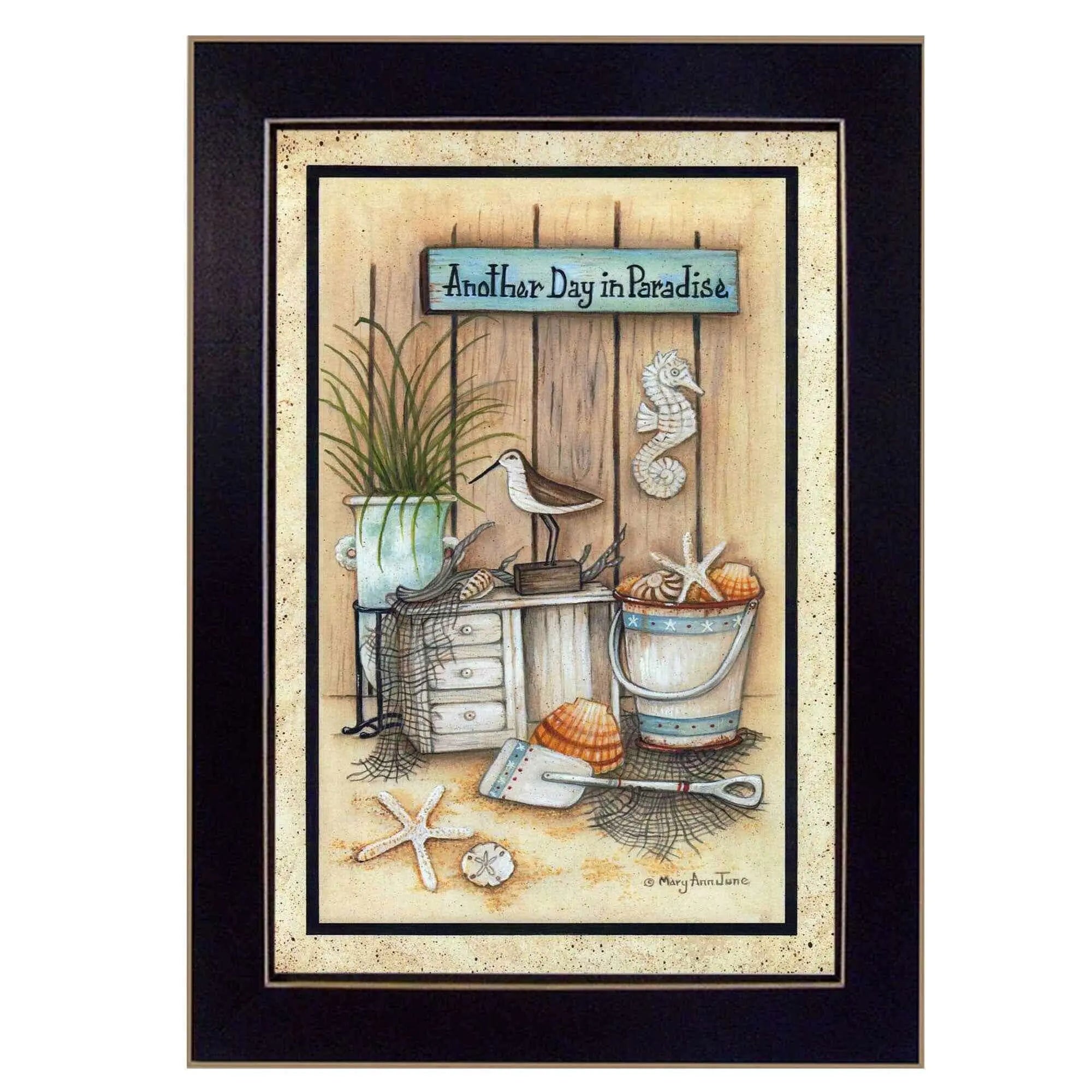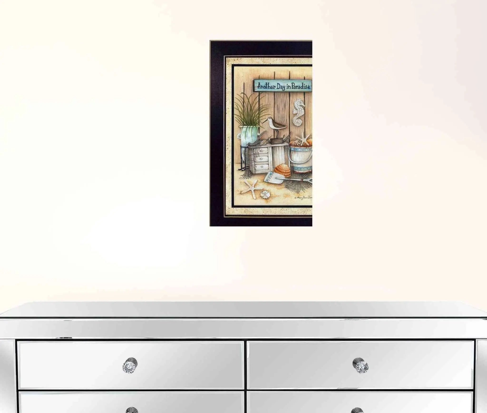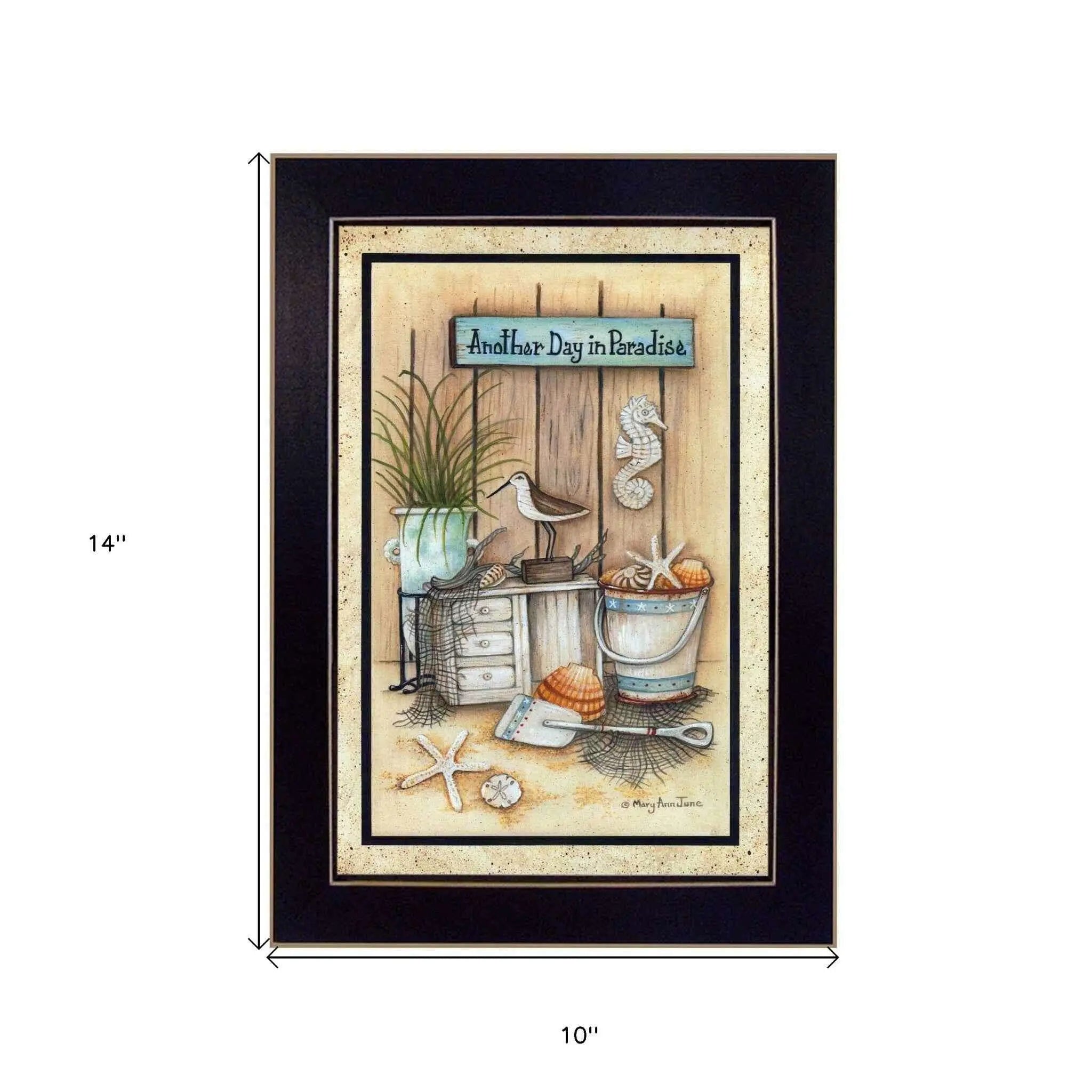 This another day in paradise 1 black framed print wall art will add a beautiful decorative accent to your decor. This print is a visual artistic expression that allows you to decorate your space in style. Reproduced for you on paper, this hanging decorative accent will be a trendy and fashionable way to dress your walls. Adding this hanging wall art to your space to make your room feel more finished and attractive. Instantly liven up your space with this art that brings color and dimension to your walls. 14 inches H x 10 inches W x 1 inches D