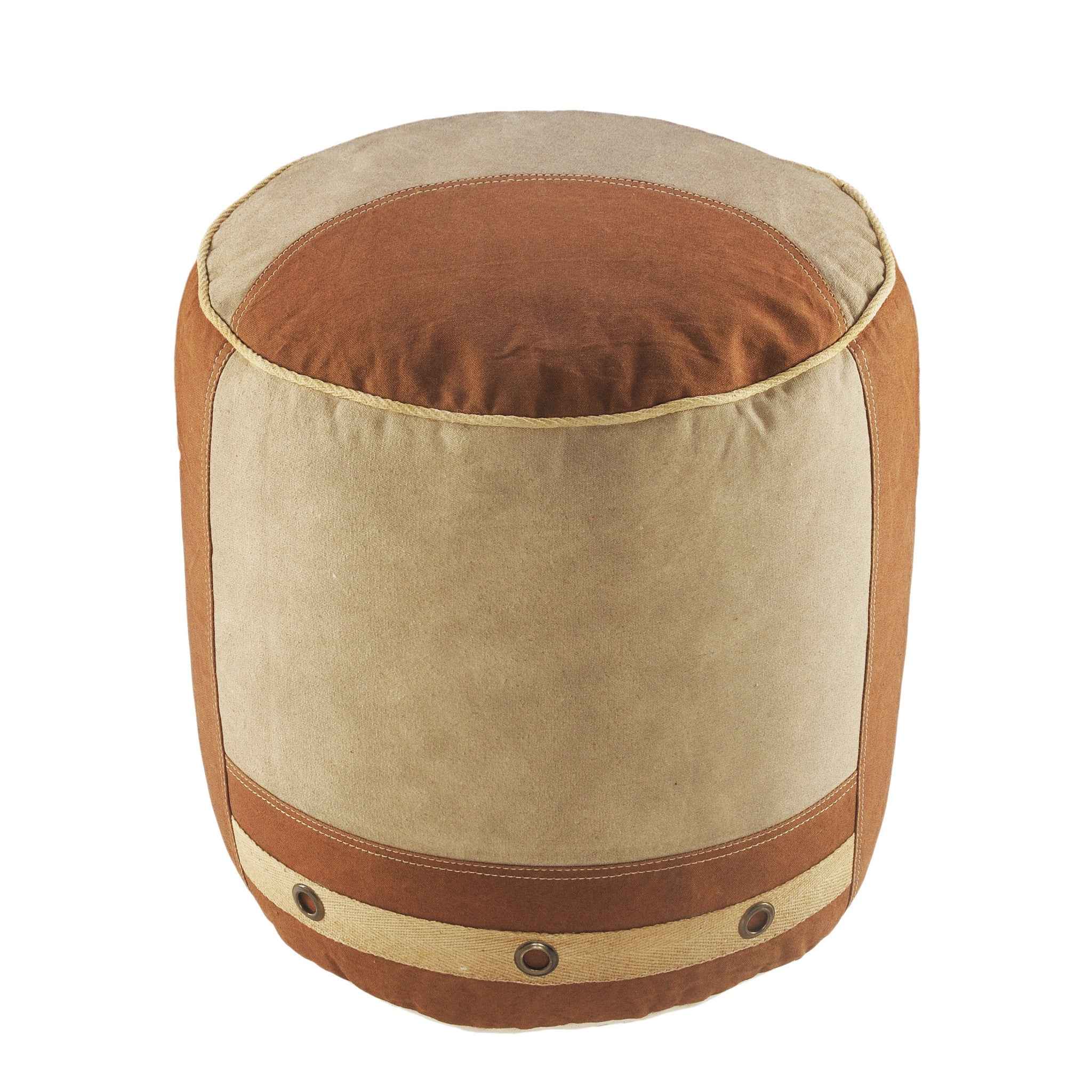 16" Tan Cotton Cylinder Striped Pouf Ottoman