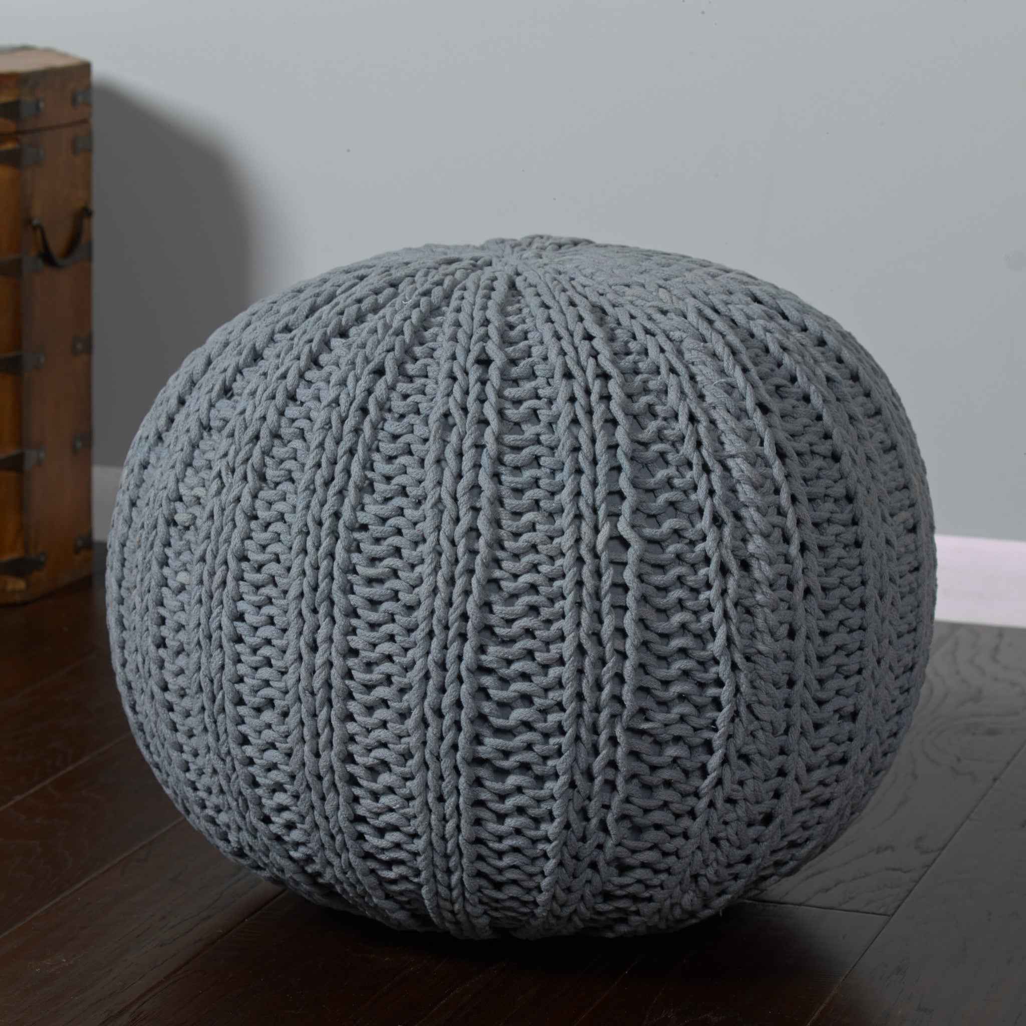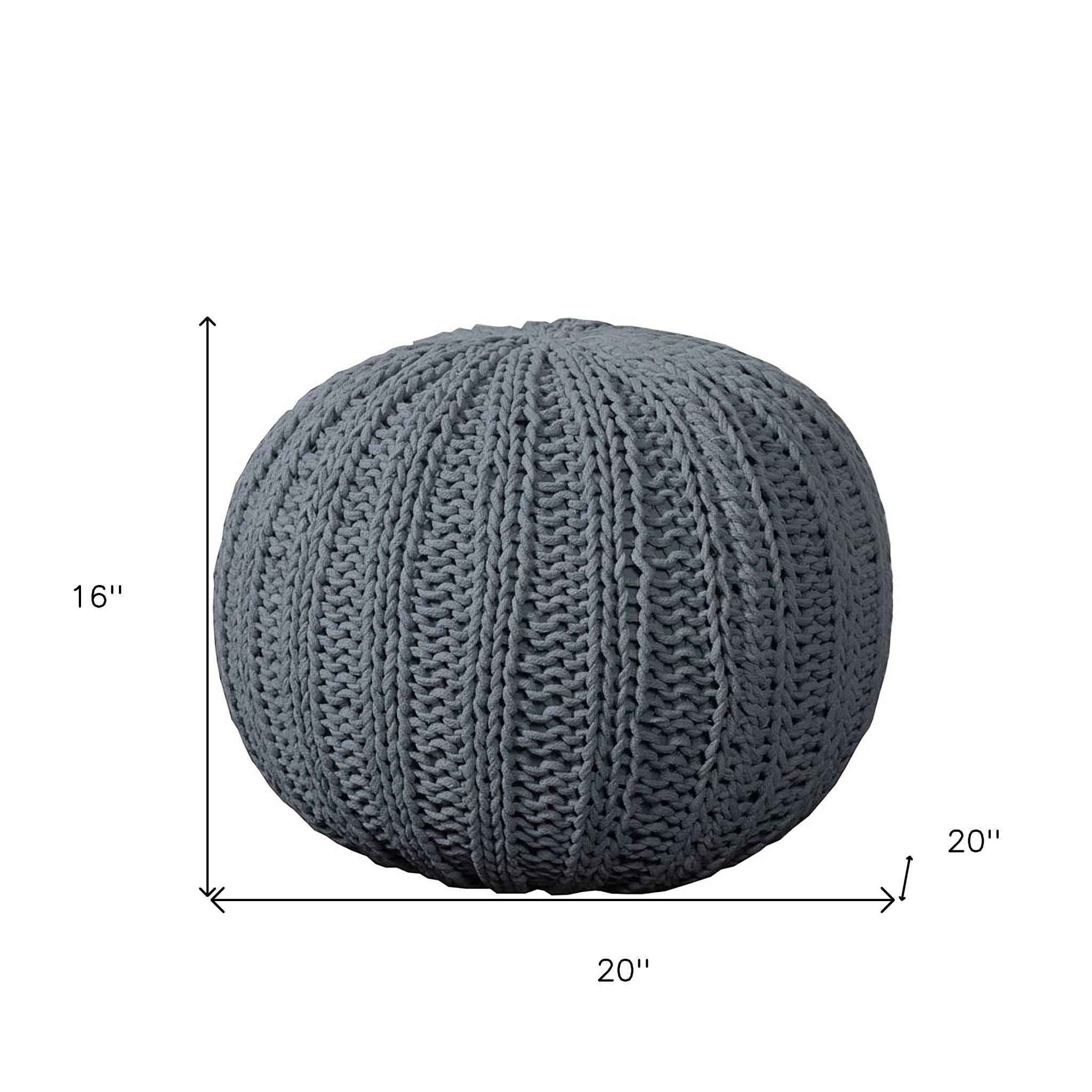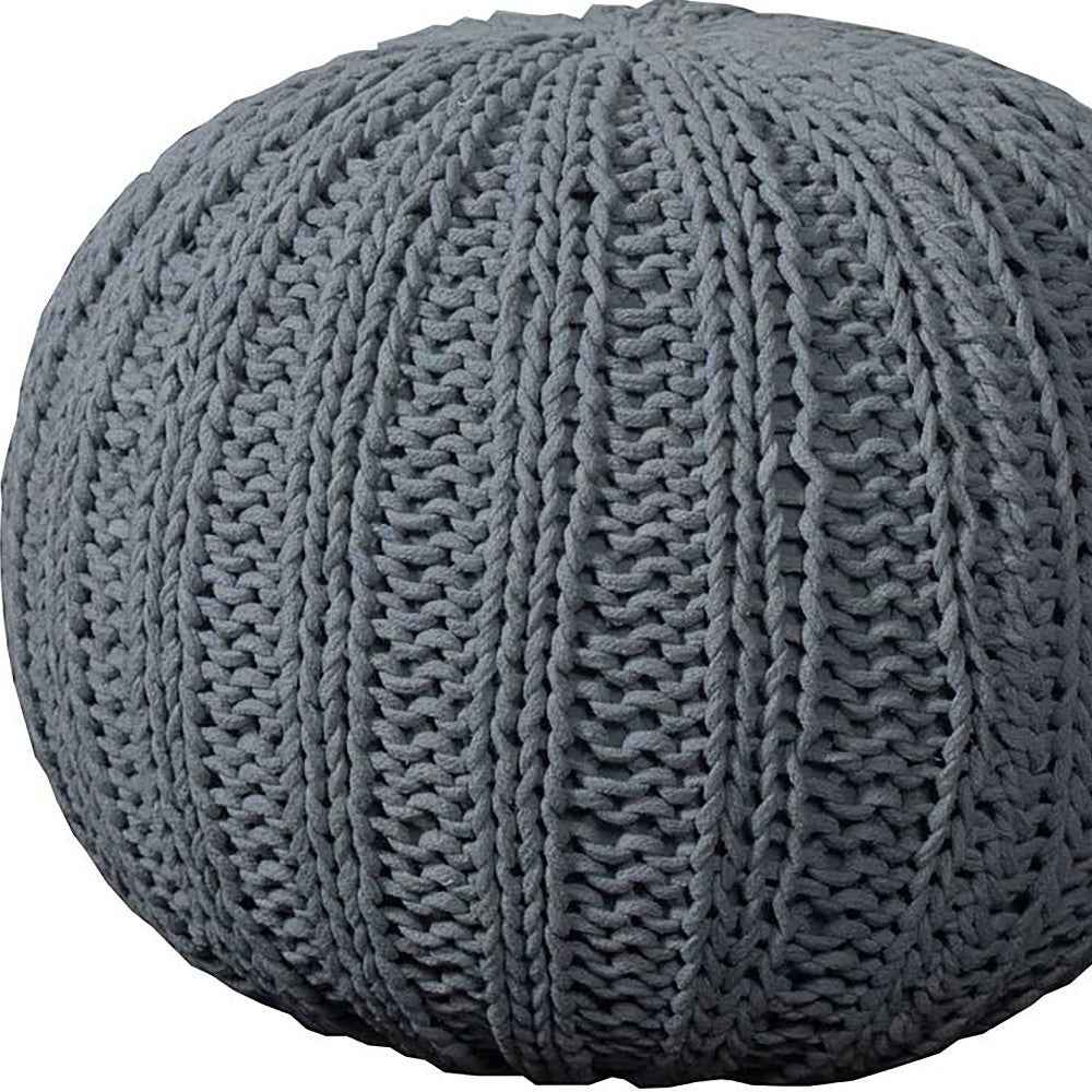 20" Gray Cotton Round Pouf Ottoman