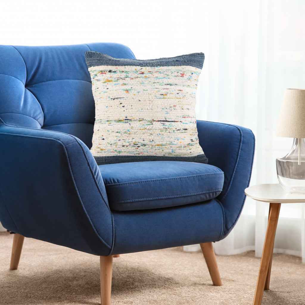 20" X 20" Blue And Off-White 100% Cotton Abstract Zippered Pillow