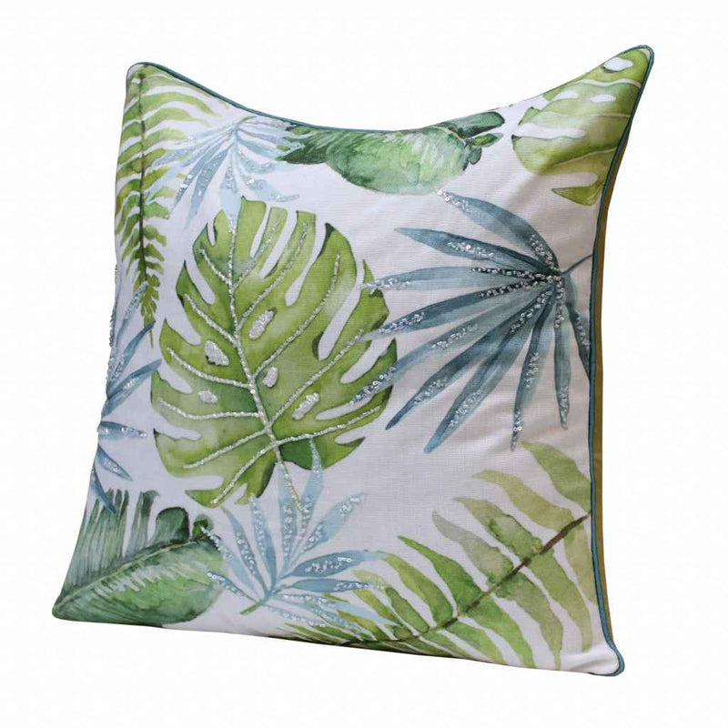 20" X 20" Green And Blue Polyester Floral Zippered Pillow
