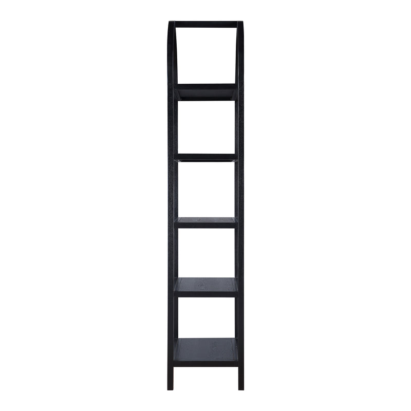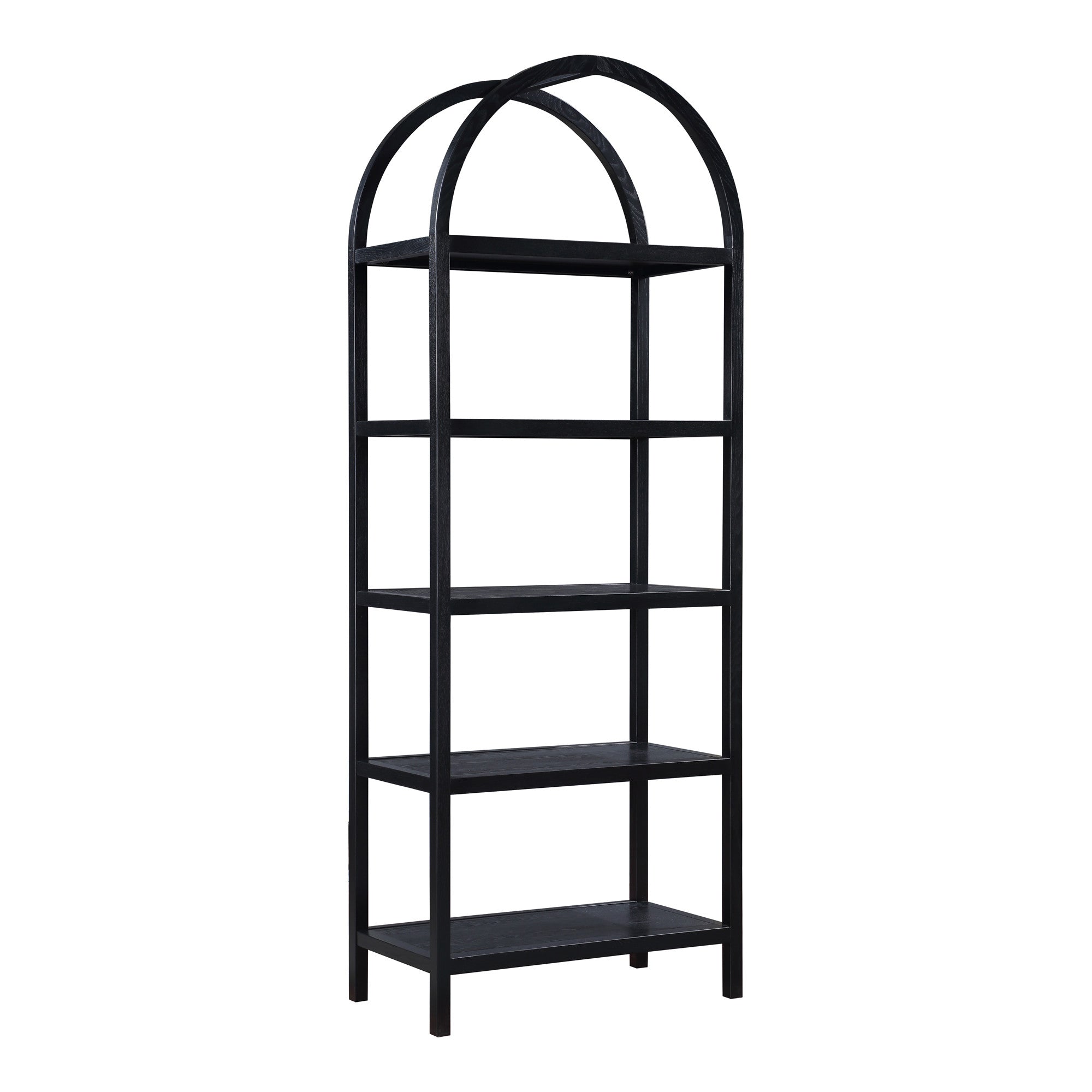 80" Black Oak Wood Five Tier Arched Top Bookcase