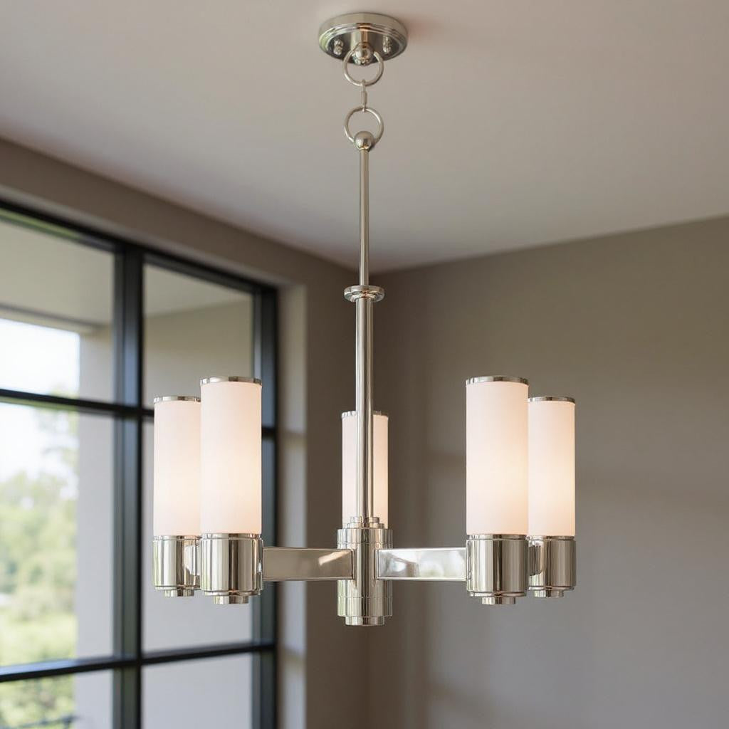Five Light Dimmable Chandelier With Shades