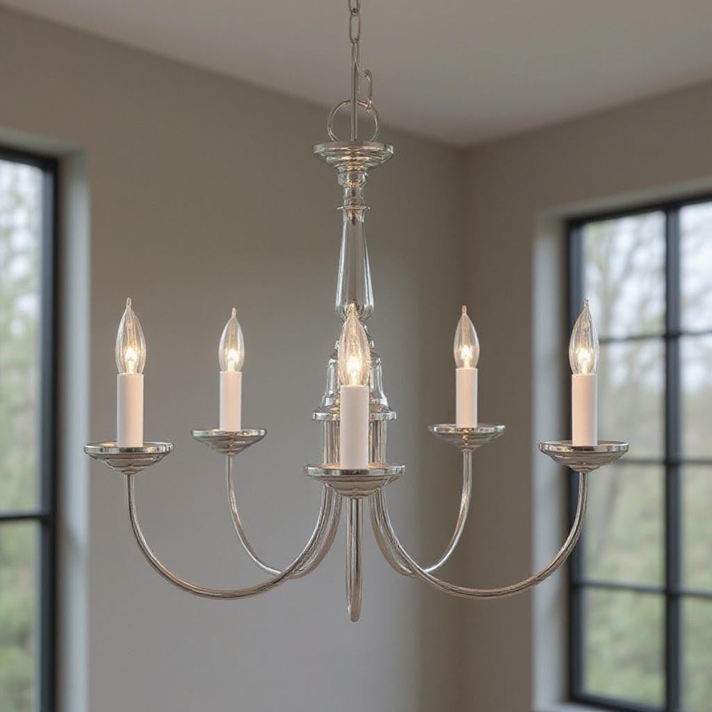 Nickel Five Light Metal Dimmable Chandelier With Shades - Skip to content