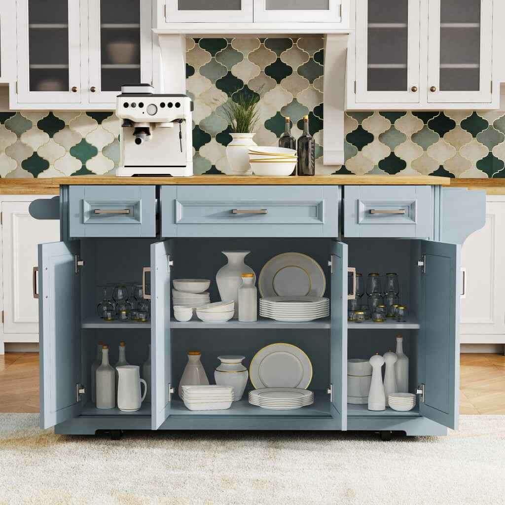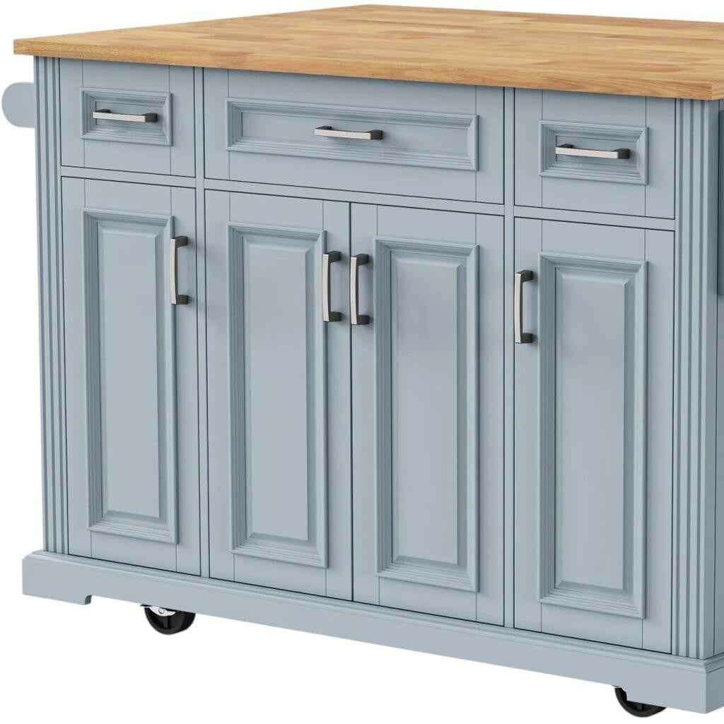 54" Light Blue Wood Rolling Kitchen Island With Storage