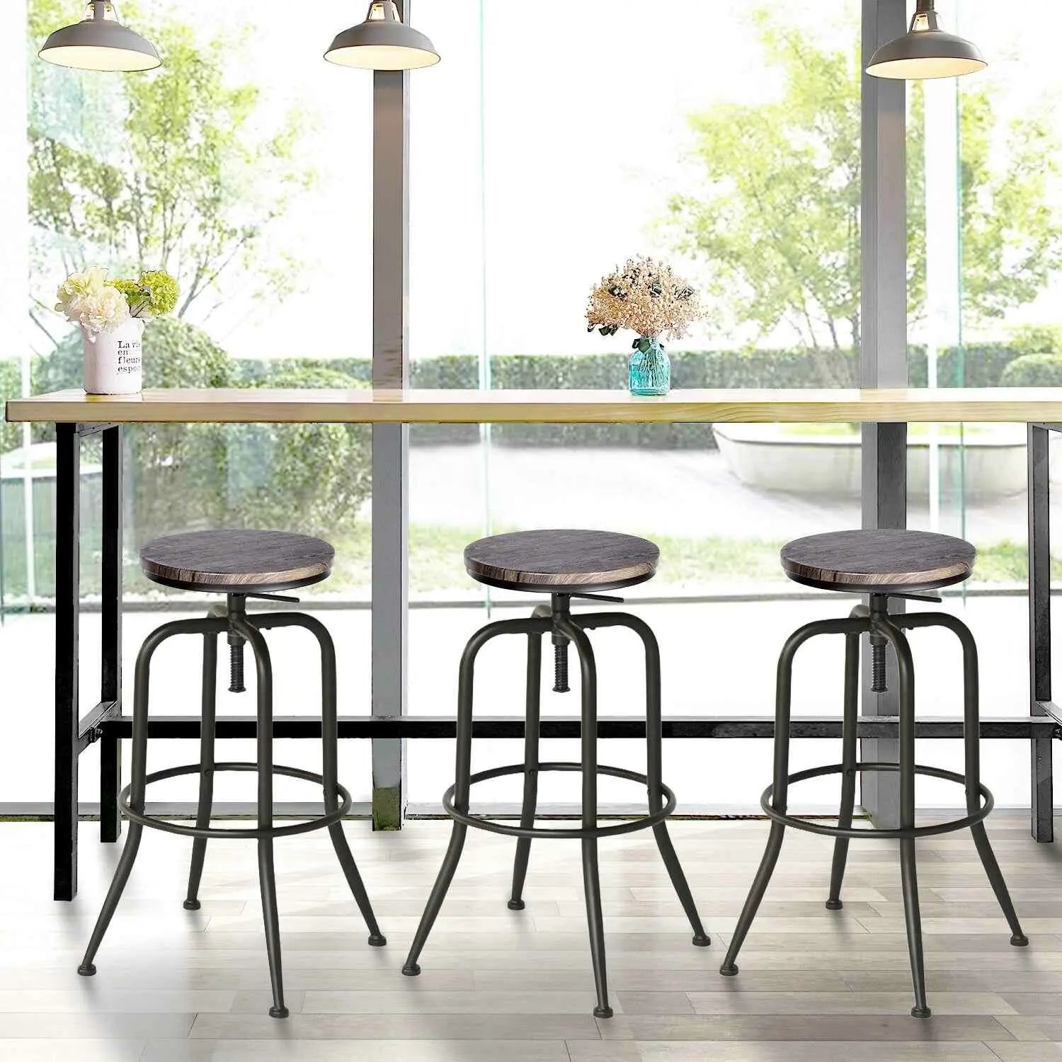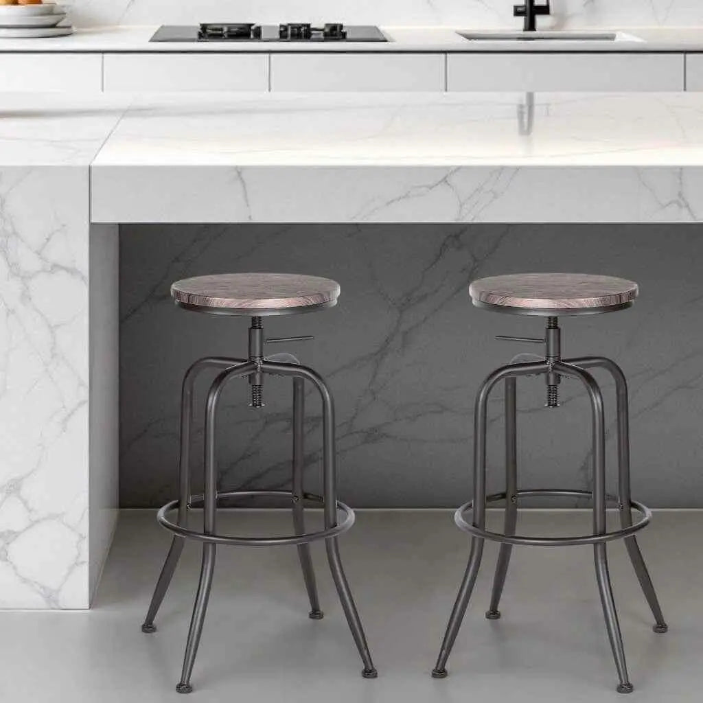 Set of Two Brown And Black Solid Wood And Steel Swivel Backless "> "> Skip to content