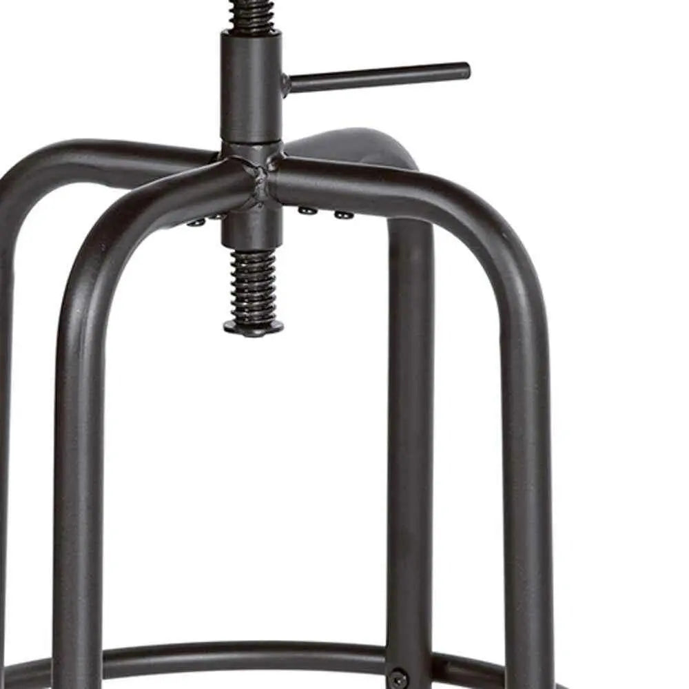 Set of Two Brown And Black Solid Wood And Steel Swivel Backless Counter Height Bar Chairs