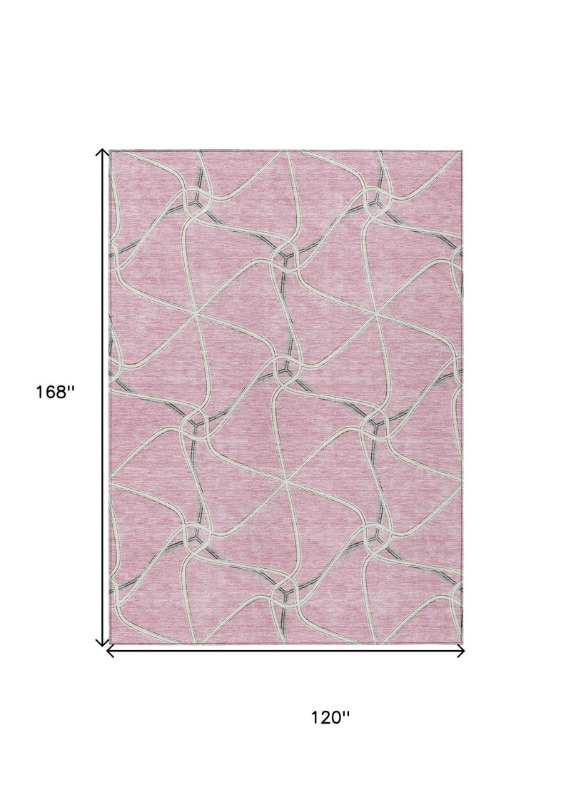 10' X 14' Pink And Ivory Geometric Washable Indoor Outdoor Area Rug