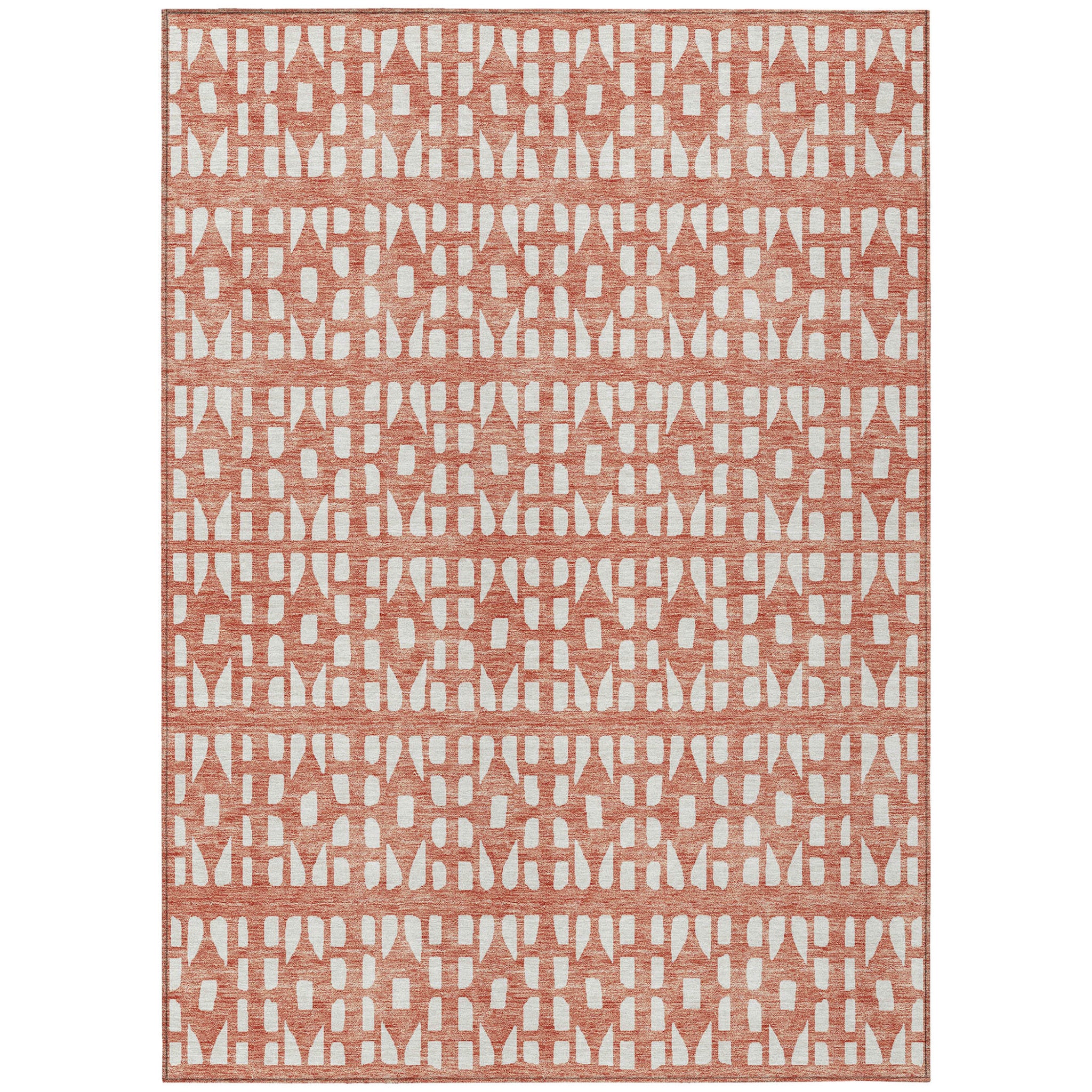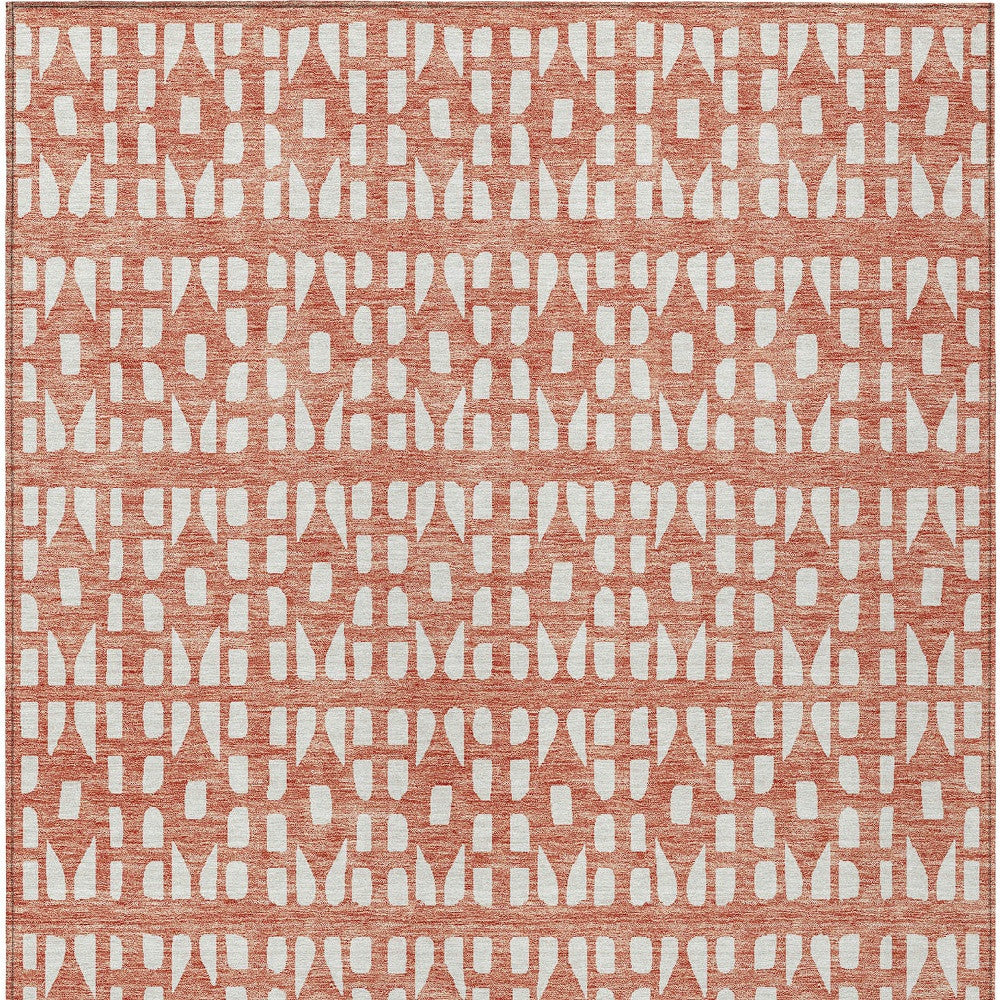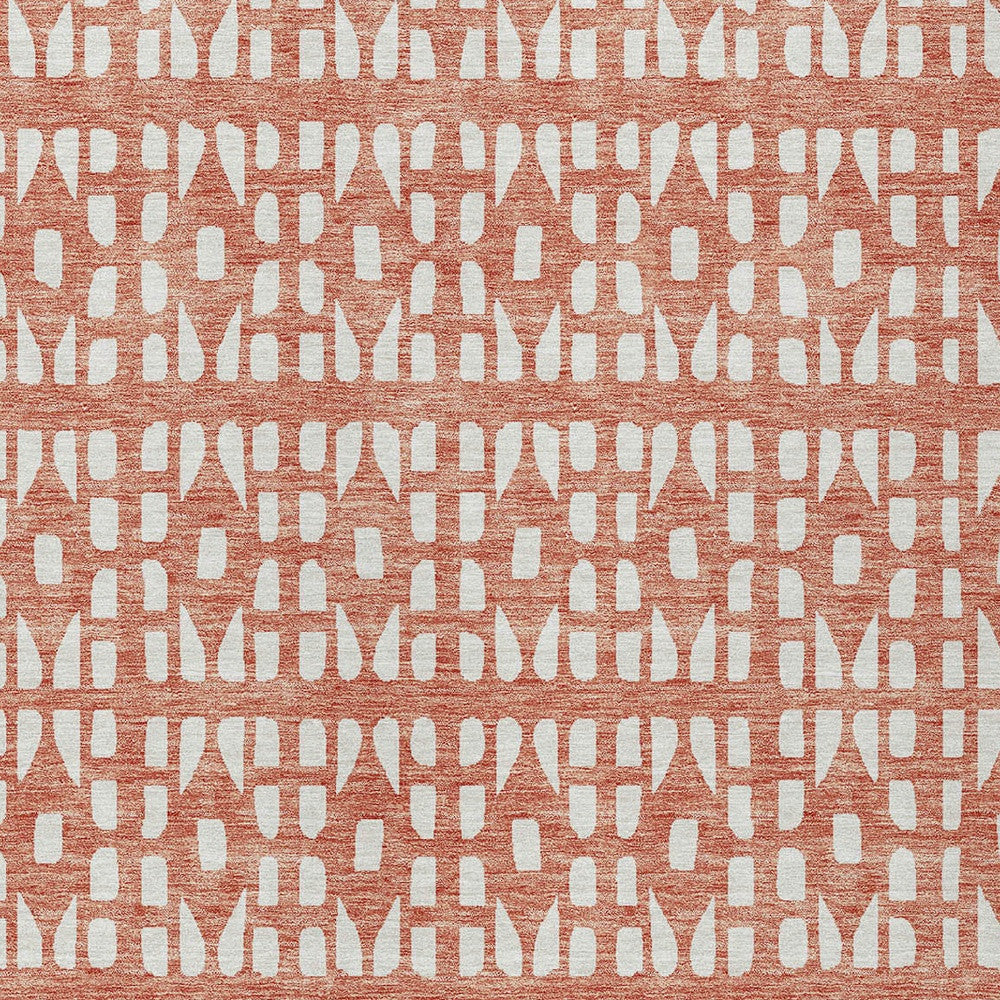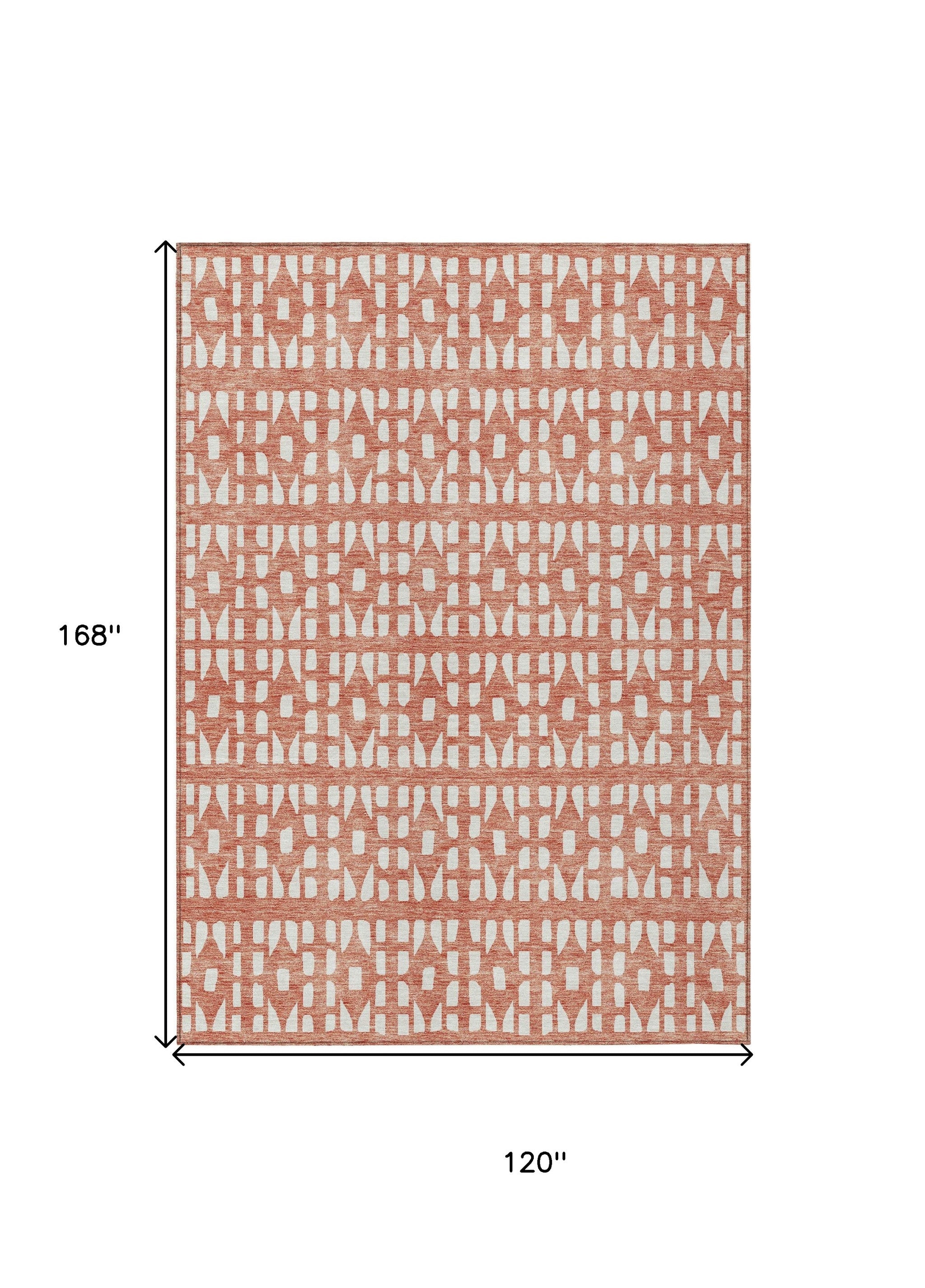 10' X 14' Salmon And Ivory Geometric Washable Indoor Outdoor Area Rug