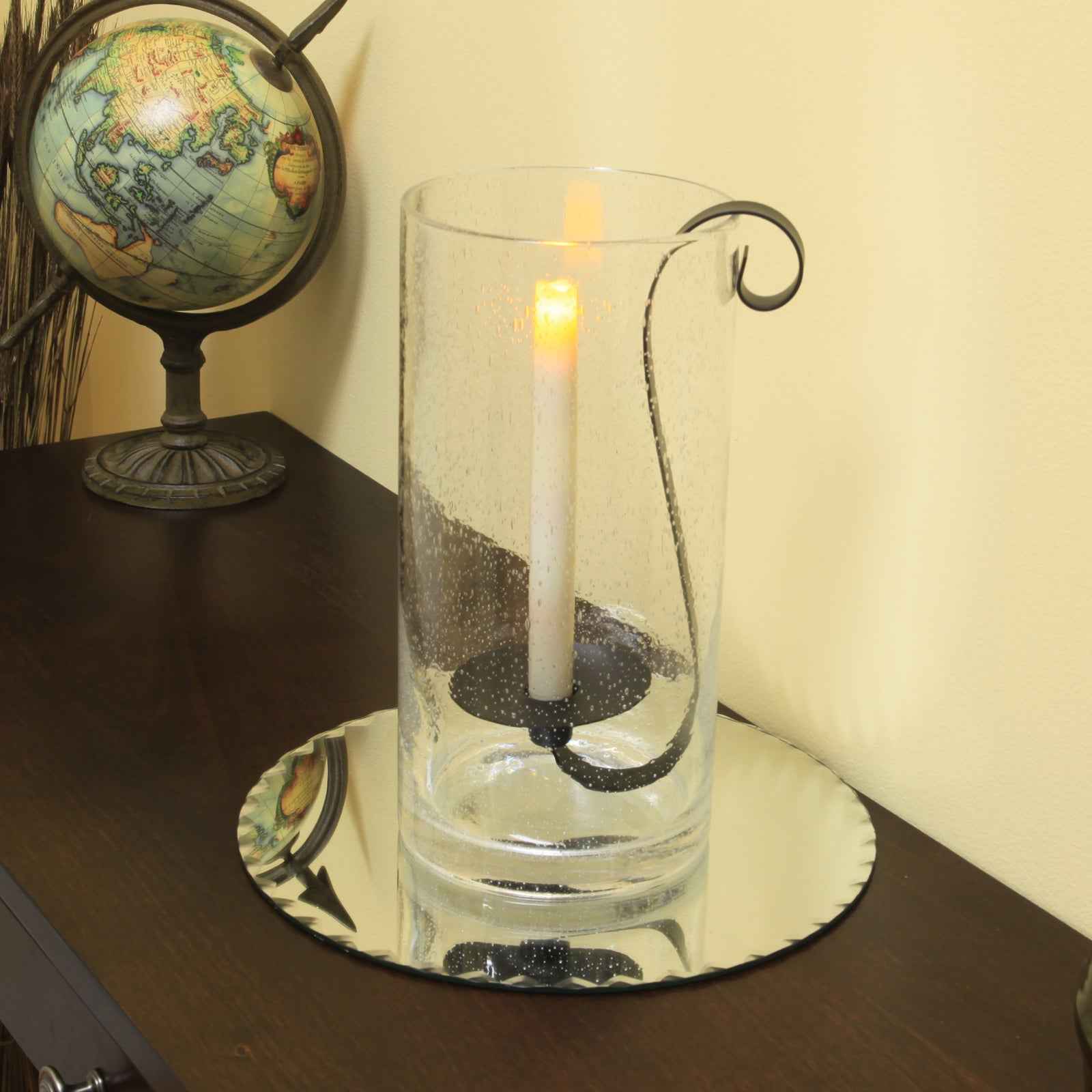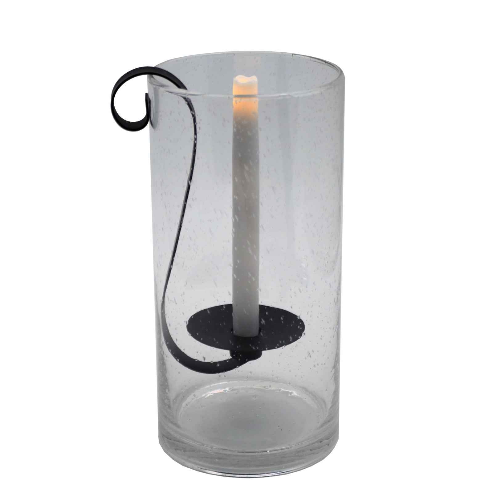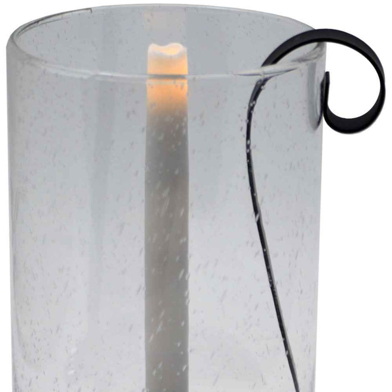 This 12-inch light gray seeded glass centerpiece taper candle holder with candle is a great addition to your home decor and sure to complement your existing furniture. Ships with a flameless taper for added value and ease of use. This candleholder is the perfect illuminating design to accent your space in style. Candleholders are a decorative accent on their own. They are also an attractive way to turn a simple candle into a piece of décor on its own. 12-inch H x 6-inch W x 6-inch D