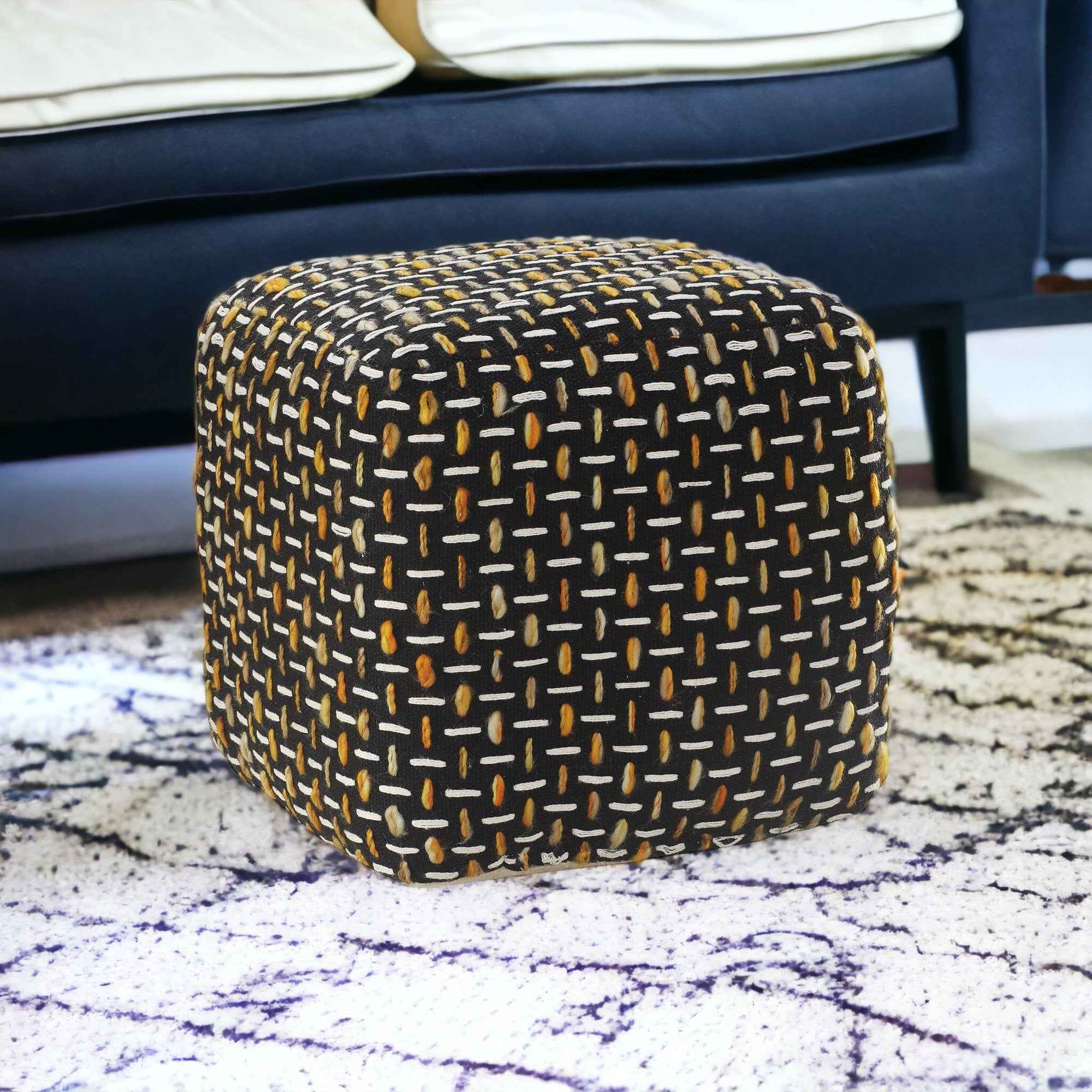 16" Black Fabric Geometric Pouf Ottoman Skip to content