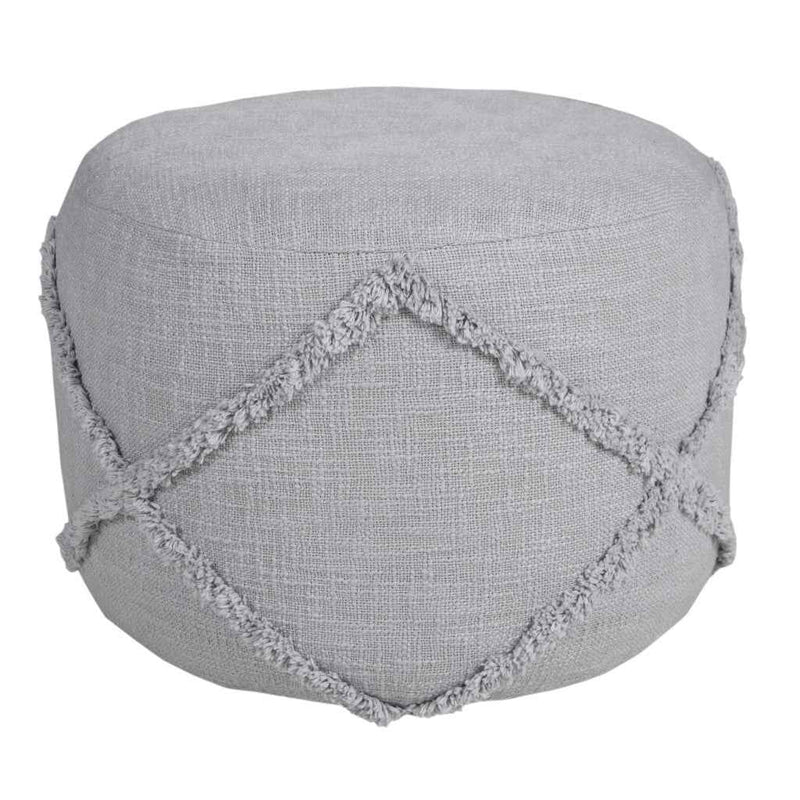 18" Gray Cotton Cylinder Geometric Pouf Ottoman Skip to content