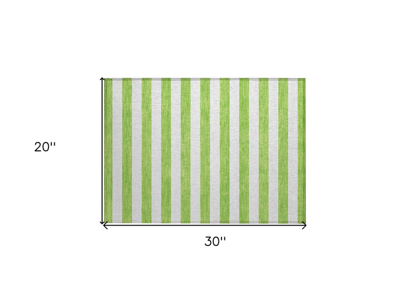 2' X 3' Lime Green and White Striped Washable Indoor Outdoor Area Rug