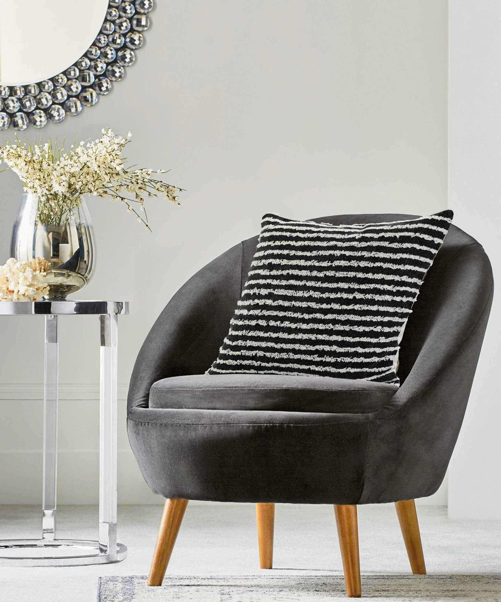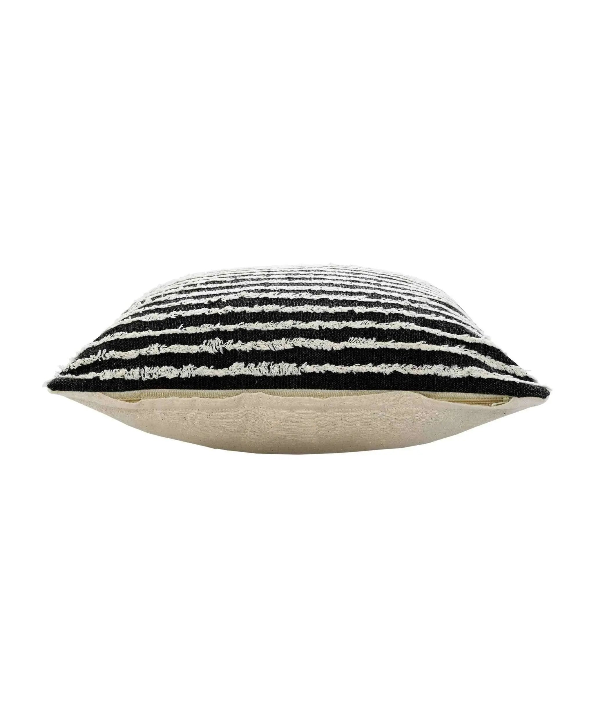 This 20" x 20" black and cream 100% cotton striped zippered pillow will add a beautiful decorative accent to your decor. This super soft decorative pillow is expertly made of high grade, long lasting 100% cotton in a black and cream coloration. For anyone that loves to decorate or accent their space with color and texture. Decorative pillows are a great way to change up the look and feel of your space easily and quickly. 4" H x 20" W x 20" D